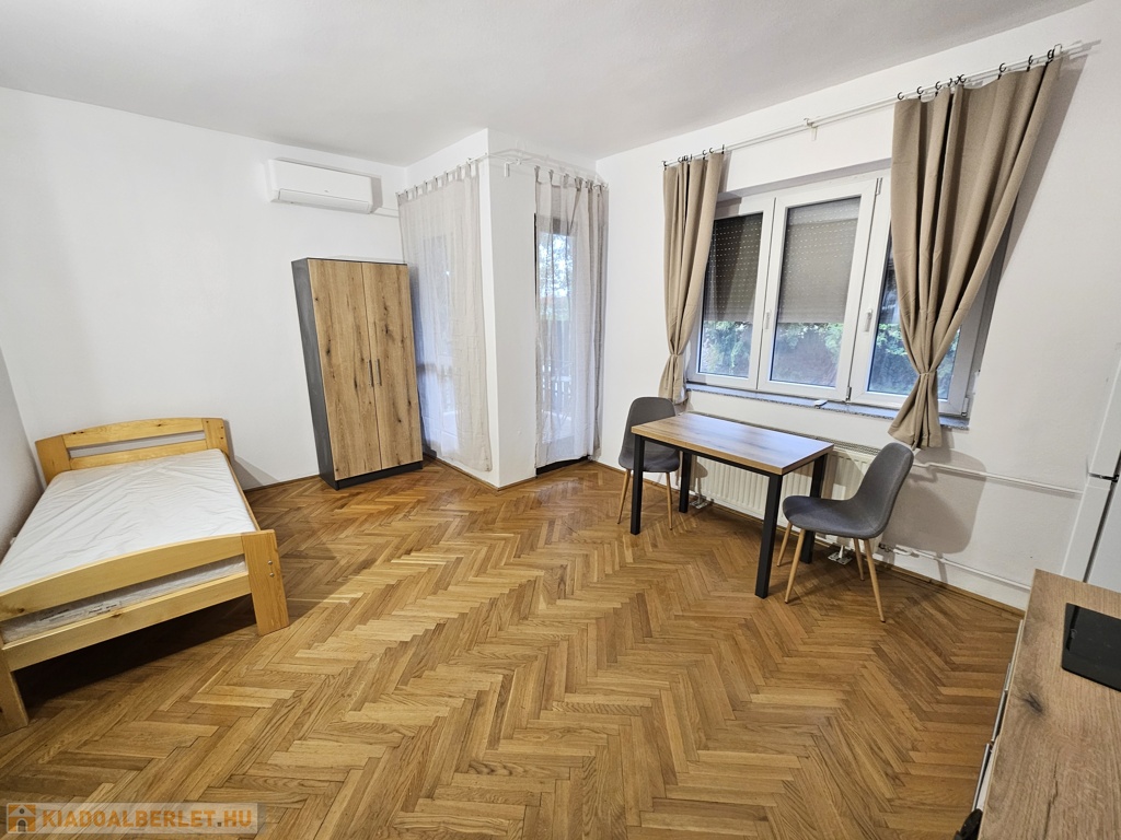 Zugló Városliget melletti, Metró közeli (Mexikói út 400m), klímás stúdió lakás kiadó kertes családi házban, annak felső szintjén. Ingatlanon belül gépjármű beállási lehetőség adott.