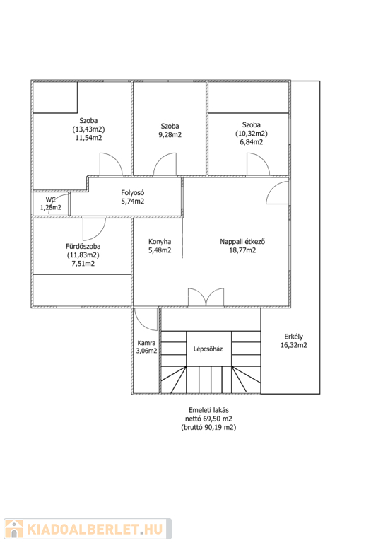 A lakás az első emeleten helyezkedik el, és három különálló szobával rendelkezik, ideális választás lehet családok vagy akár munkatársak, diákok számára is.