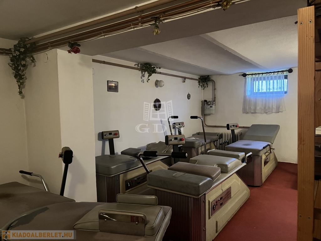 Az épület alagsorában található körülbelül 150 m2 alapterületű alakformáló szalon, szoláriummal. Vállalkozás indítása esetén plusz 100.000 forint költségen bérelhető vagy önállóan is bérbe vehető.
