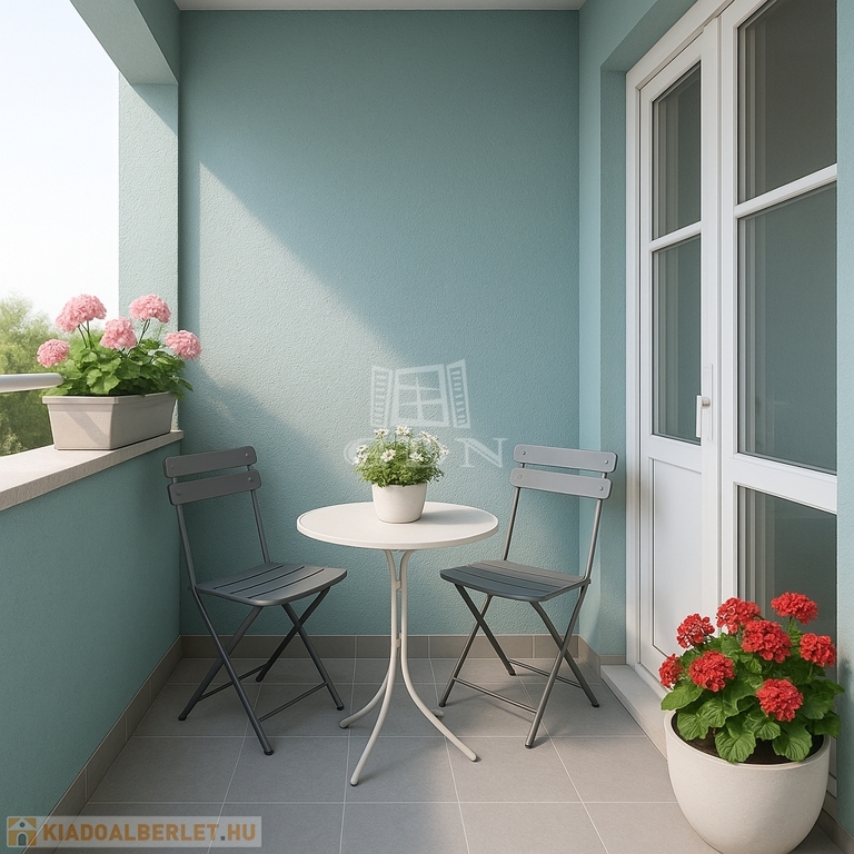 Az utcai kilátást biztosító lakáshoz tartozik egy 4 m²-es és egy 2 m²-es erkély, amely tökéletes helyszín a pihenésre.