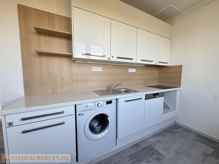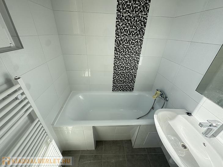 A konyha gépesített, mosógéppel és mosogatógéppel felszerelt, a sütő beépítése pedig hamarosan megtörténik. A folyosón praktikus beépített szekrénysor található. A fürdőszoba kádas kialakítású, törölközőszárítóval ellátva, a WC külön helyiségben kapott helyet. A lakás bútorozatlan, novembertől költözhető.