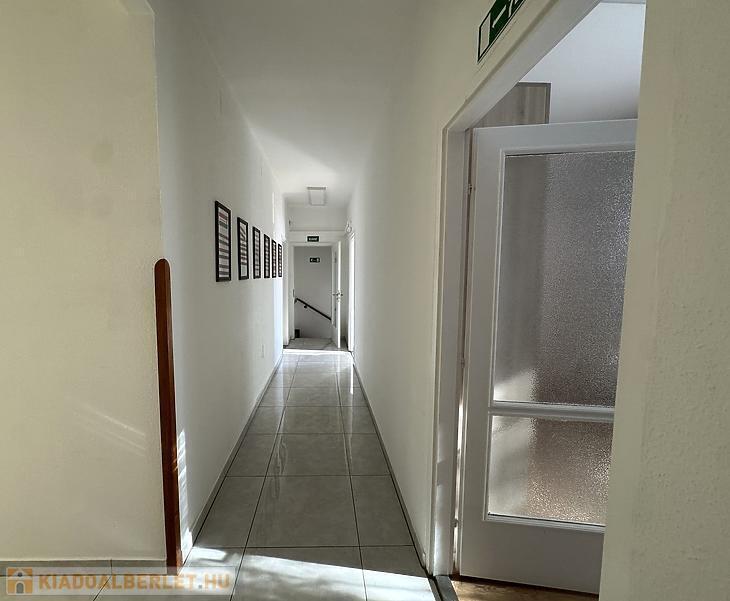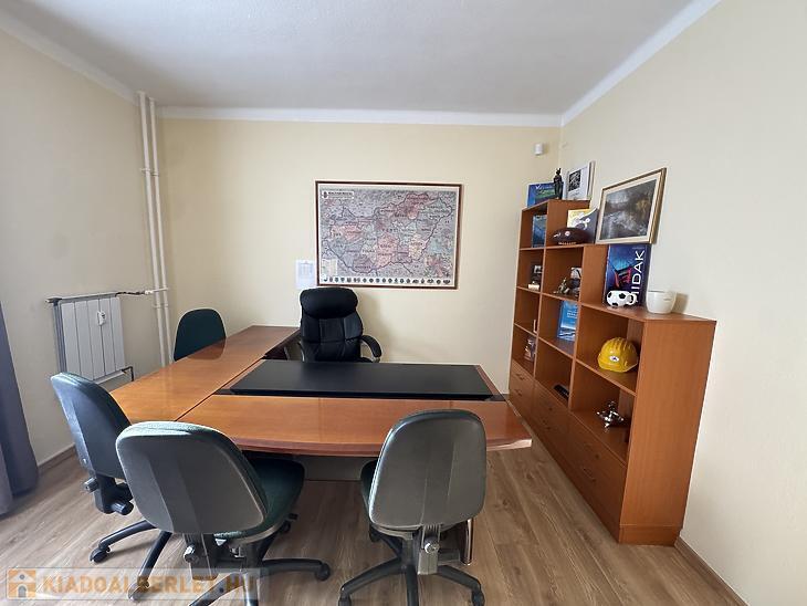 Az alsó szinten egy tágas előtér található, ahol egy mosdóhelyiség és egy nagy tárolószekrény is helyet kapott. Itt található a villanyhálózat is, amely 3×16 amper teljesítményű, valamint ipari áram is rendelkezésre áll. A felső szinten öt különálló irodahelyiség, egy tárgyaló, egy teljesen felszerelt konyha, valamint egy külön mosdóhelyiség található.