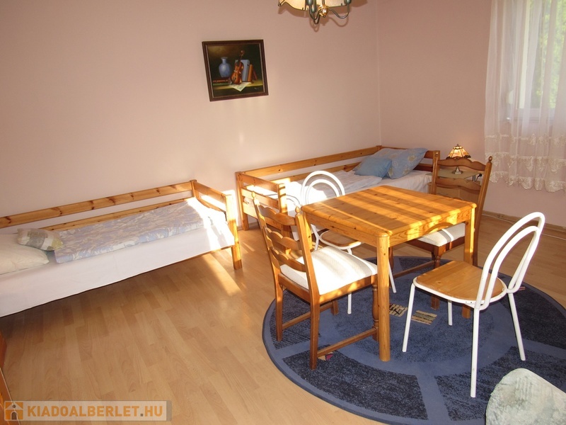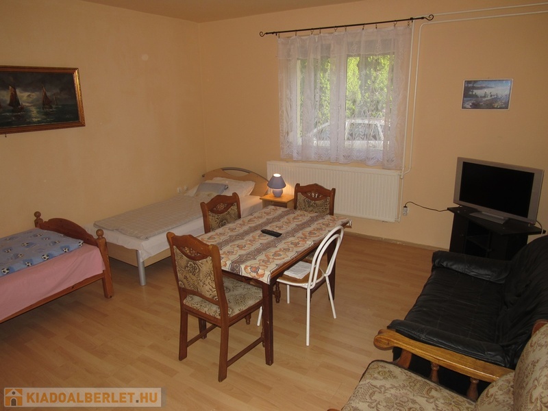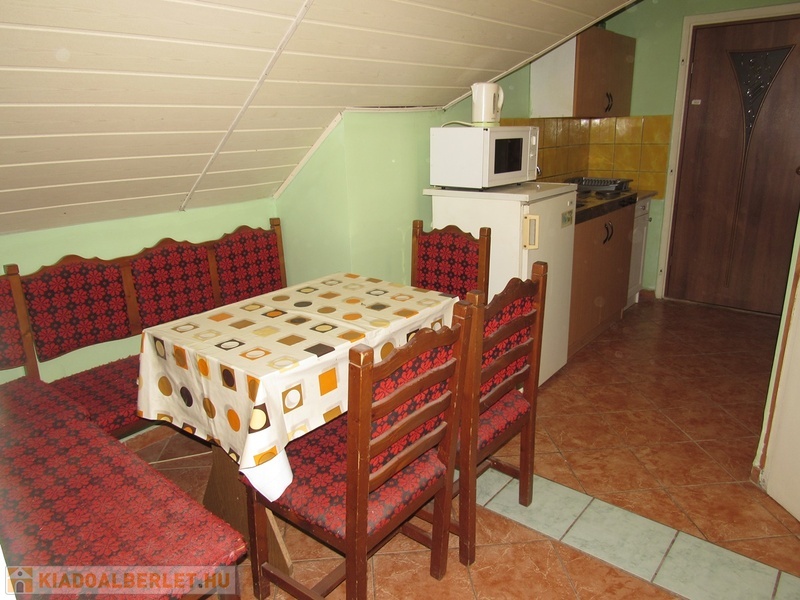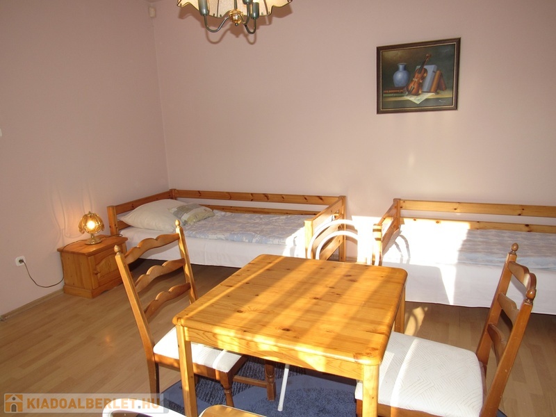 Az emeleten található 50 m2-es, 1 szobás apartman 3 ággyal és 1 pótággyal rendelkezik. Saját fürdõszoba, Wc, konyhasarok és étkezõsarokkal.