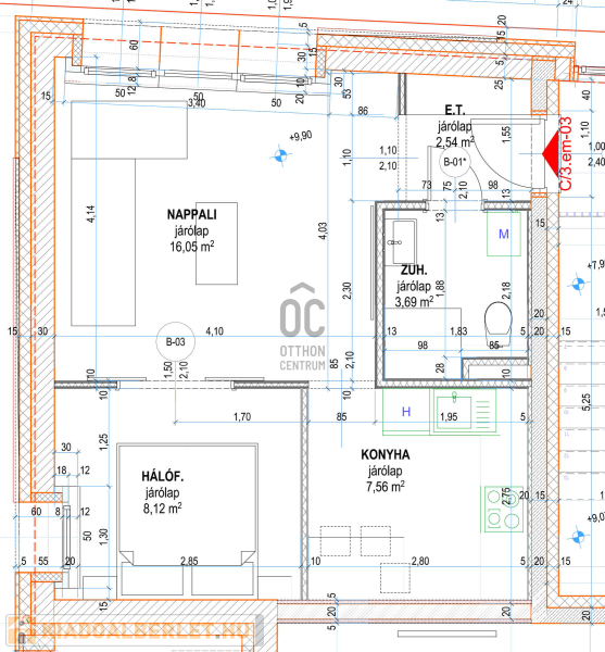 Az ingatlan 38 m2 - es, modern elrendezésű.