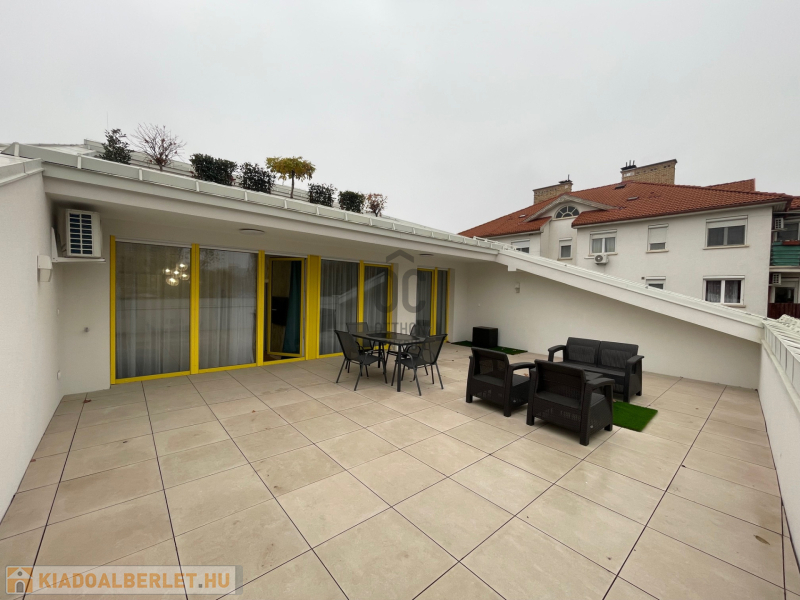 Penthous jellegű, nappali + 2 hálós lakás hatalmas terasszal, duplagarázzsal, azonnali költözéssel KIADÓ a Hatvan-utcai kertben!