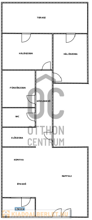 -Helyiségek: amerikai konyhás nappali, 2 külön nyíló hálószoba, fürdőszoba, külön WC, előszoba