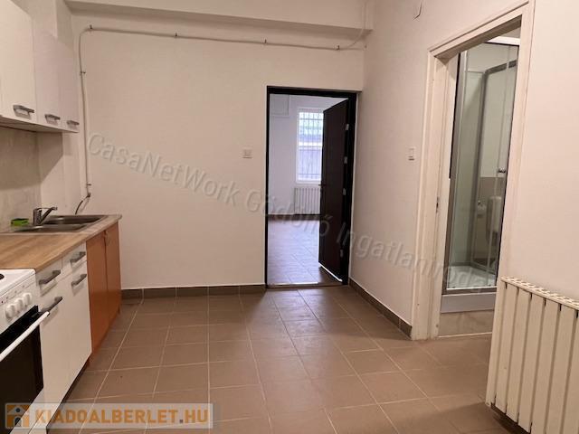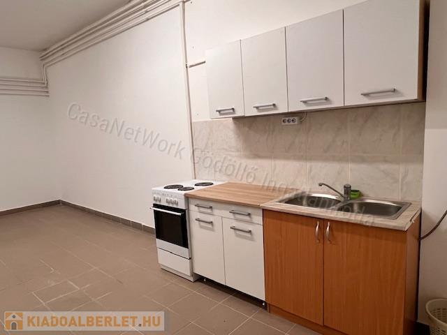 Társasház földszintjén kiadó lakás, mely 1 db nagy szobából (30 m2) és egy konyha-étkező-nappali + fürdőszoba  helyiségből áll.  A lakás bútorozatlan, minimális konyhával felszerelt.
