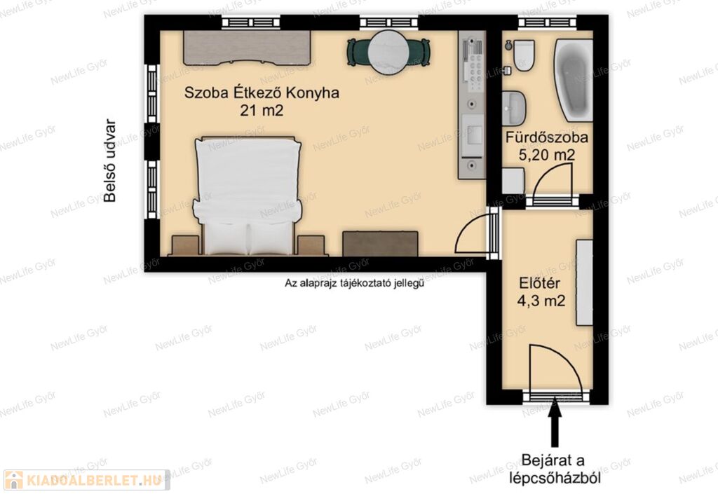Kiadó lakás Győr 140 000 Ft