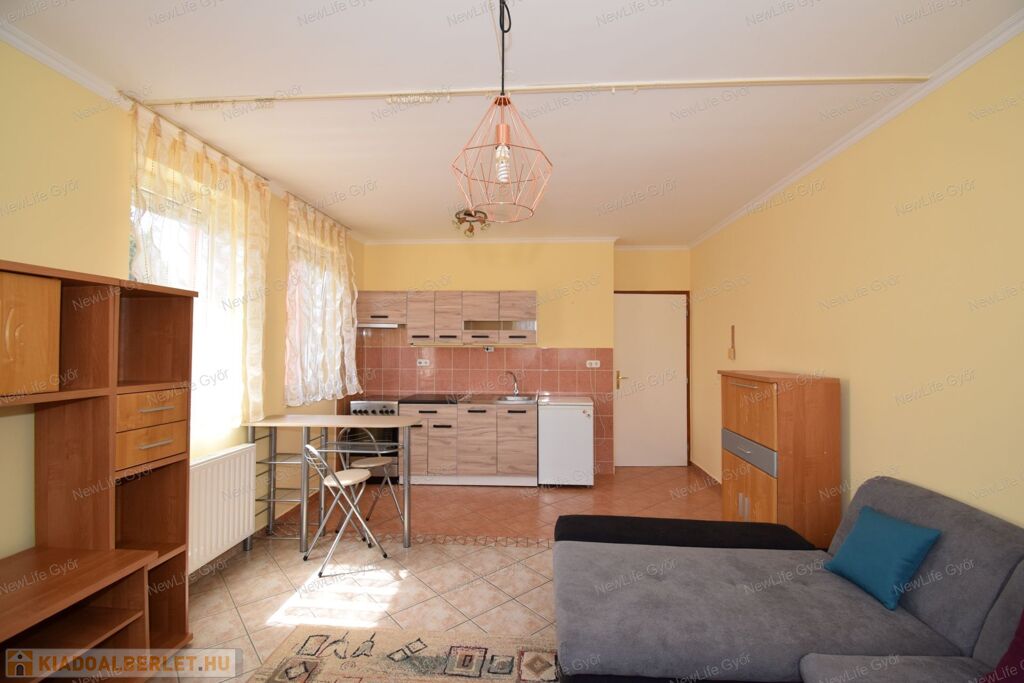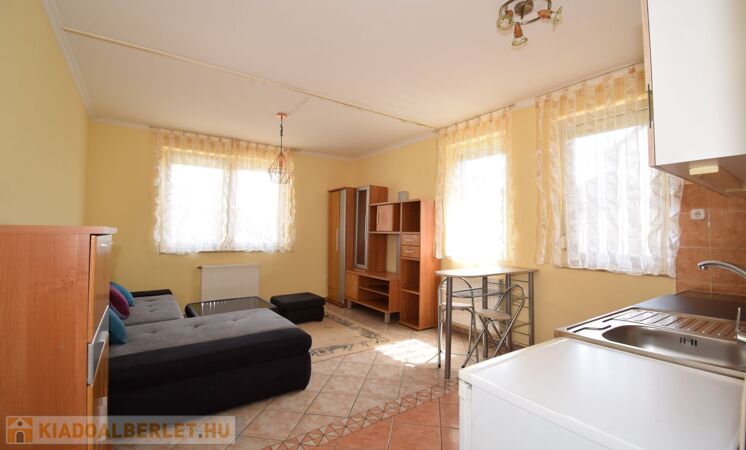 Győr egyetemétől 10 percre kiadó ez a 31 m2-es garzon egy társasház földszintjén.