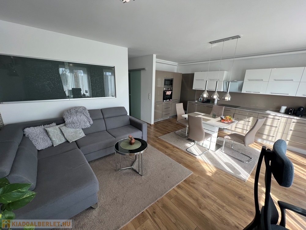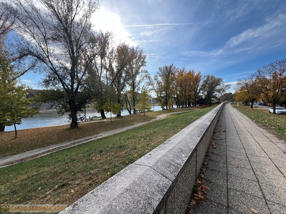 Győr-Révfalu rendkívül kedvelt, klasszikus részén, Belvárostól, Egyetemtől pár perces sétatávolságra, a Dózsa György rakparton, csendes, rendezett társasház negyedik emeletén, teljes felújításon átesett (nyílászáró-, víz-, villanyvezeték csere, fűtéskorszerűsítés, burkolatcsere, új konyhabútor, szaniterek cseréje, festés, stb.) amerikai konyha – étkező – nappali + 1 hálószobás, továbbá, beépített gardróbbal, különálló fürdőszobával, különálló WC-vel és kamrával is felszerelt, kiváló állapotú 55 m2 hasznos alapterületű bútorozott, részben gépesített KLIMATIZÁLT téglalakás, 6,93 m2-es ERKÉLLYEL, PÁRATLAN DUNAI PANORÁMÁVAL kiadó.