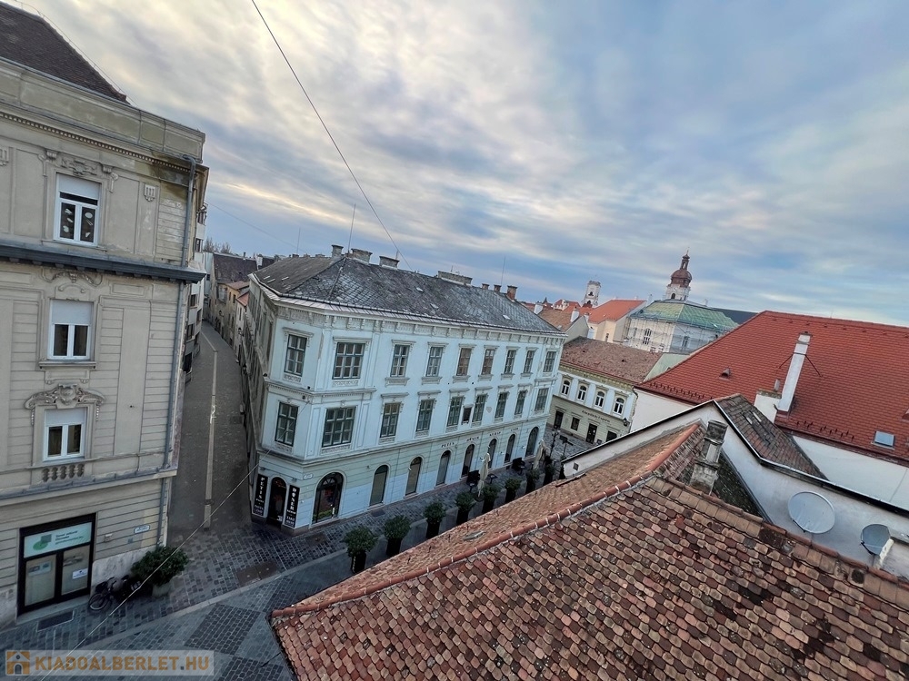 Győr-Belvárosának legkedveltebb sétálóutcájában, Széchenyi tértől és Dunakapu tértől pár lépéses sétatávolságra, a Baross úton, rendezett, tiszta, liftes társasház harmadik emeletén, teljes felújításon átesett, konyha + étkező - nappali + 2 hálószobás, továbbá háztartási helyiséggel is felszerelt, alacsony rezsijű, bútorozatlan, gépesített, kiváló állapotú, 71 m2-es KLIMATIZÁLT téglalakás, maximum 3 fő részére, GYÖNYÖRŰ KILÁTÁSSAL kiadó!