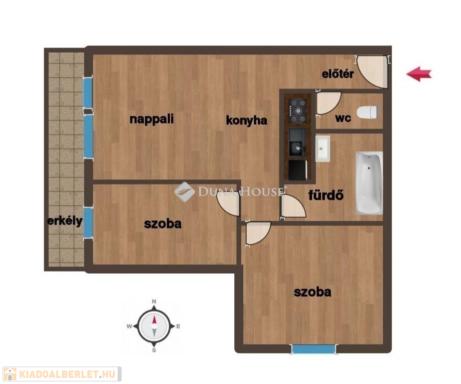 Kiadó lakás Győr-Révfalu kedvelt részén, Vízivárosban!Győr-Révfalu Vízivárosi részén kiadó egy 50 m²-es, 2 szoba + amerikai konyha - nappalis, első emeleti lakás, 10 m²-es erkéllyel.Főbb jellemzők:Modern, igényes kialakításMinőségi burkolatokPadlófűtés, hőmennyiségmérőHűtő-fűtő klíma10 m²-es terasz Elrendezés:Amerikai konyhás nappali2 hálószobaElőszobaFürdőszoba + WCParkolás: zárt felszíni beállóElőnyök:Rendezett társasház, barátságos lakóközösségAlacsony fenntartási költségekNyugodt, zöldövezeti környezetKözel az egyetemhez, belvároshoz, boltokhoz és tömegközlekedéshezBérleti feltételek:Ár: egy havi bérleti díj + 2 havi kaució szükséges.Minimum 1 éves időtartamra bérelhető.Kisállat nem hozható és a dohányzás sem megengedett.Ideális választás pároknak, egyedülállóknak, kisgyermekes családoknak vagy otthoni irodát kereső vállalkozóknak.