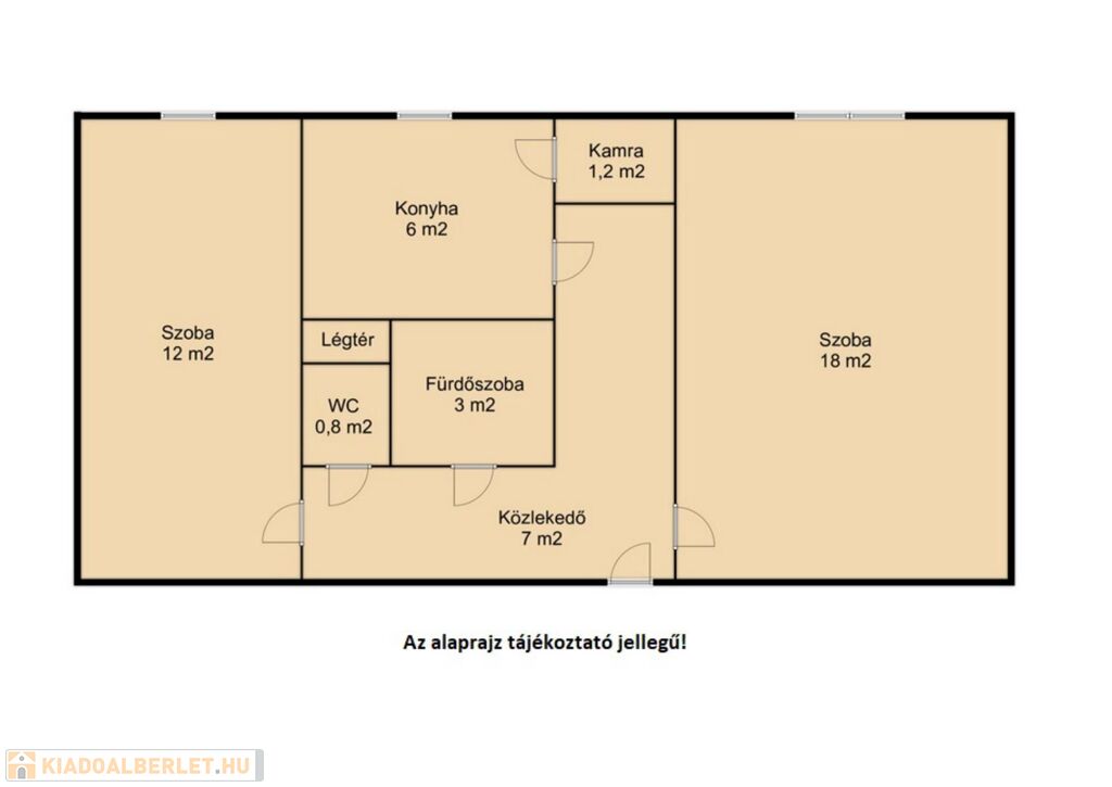 Az ingatlan belső elosztása: közlekedő, 2 szoba, konyha, fürdőszoba, Wc.