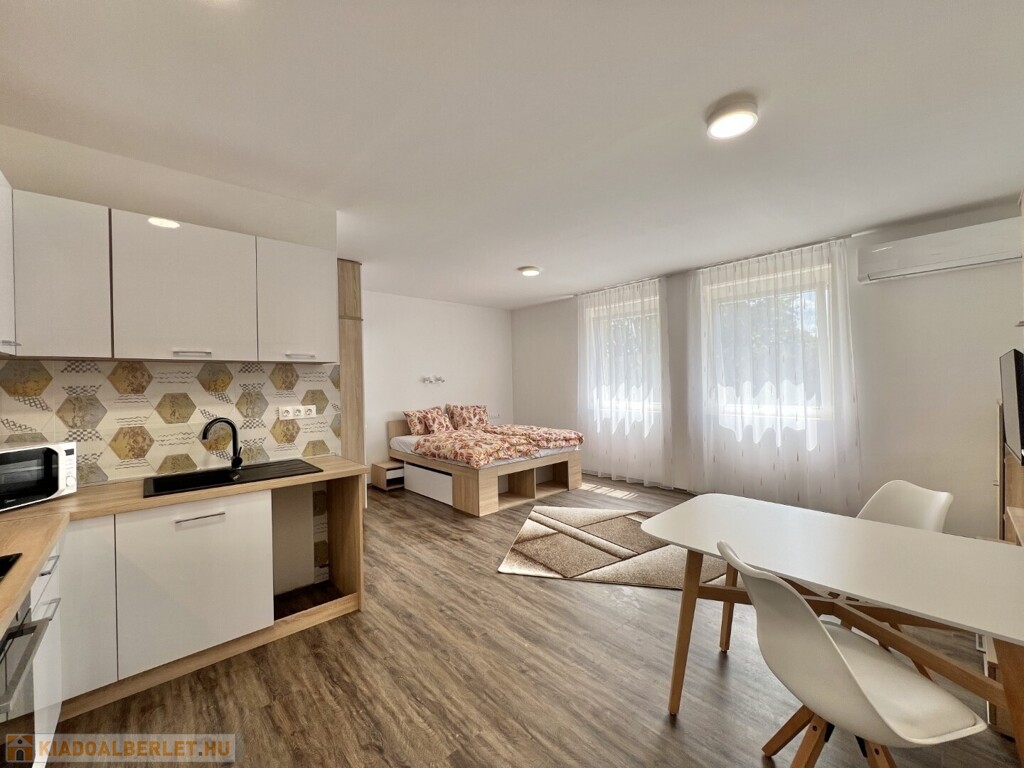Kaposváron a belváros közelében a Pécsi utcában, teljes körűen, igényesen felújított társasház 1. emeletén lévő 35 m2-es, - akár azonnal költözhető - berendezett lakás kiadó. A lakásban tágas, hangulatos szoba - konyha - beépített konyhabútorral Gorenje gépekkel - étkező, fürdőszoba- wc helyiségek kerültek kialakításra. A lakás rezsije nagyon kedvező, a fűtése - külön mérővel ellátott - légkondicionálóval megoldott, a melegvíz ellátást villanybojler biztosítja. A lakás közelében megtalálható az S-Park bevásárló központ (Interspar, DM, Mc'Donalds stb.), de a belváros is 10-15 perc séta távolságra van. A lakást a tulajdonosa legfeljebb 2 felnőtt részére kívánja bérbe adni, a dohányzás és a kisállat tartása nem engedélyezett. A lakáshoz tartozik még a társasház zárt udvarában 1 személygépkocsinak parkolóhely is. Bérleti díj: 130.000.- Ft/hó + rezsi + 2 havi kaució. Amennyiben az ingatlan felkeltette az érdeklődését, kérem hivatkozzon a 973. számú ajánlatra! Irodánk címe: Kaposvár Irányi D. u. 9.