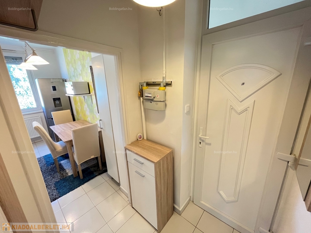 Kaposváron a Petőfi utcában, rendezett társasház 4. emeletén található 51 m2-es, igényesen berendezett lakás szép környezetben hosszú távra 2025.05.01.-től kiadó. A lakásban 2 szoba, erkély, közlekedő, konyha beépített gépekkel, kamra, fürdőszoba mosógéppel és szárítógéppel, előszoba, wc helyiségek találhatóak, továbbá tartozik hozzá kis tároló is. A lakás rezsije nagyon kedvező, a fűtése és a meleg víz ellátása kombi gázkazánnal megoldott, illetve a nappaliban légkondicionáló is van felszerelve. A lakást a tulajdonos 2 felnőtt személy részére kívánja kiadni, a dohányzás és a kisállat tartása nem engedélyezett. A parkolás a ház előtti parkolóban ingyenesen lehetséges, bevásárlási lehetőségek (Aldi, Spar), gyógyszertár, óvoda, általános iskola 500 m sugarú körben elérhetőek. Bérleti díj: 150.000.- Ft/hó + rezsi + 2 havi kaució
