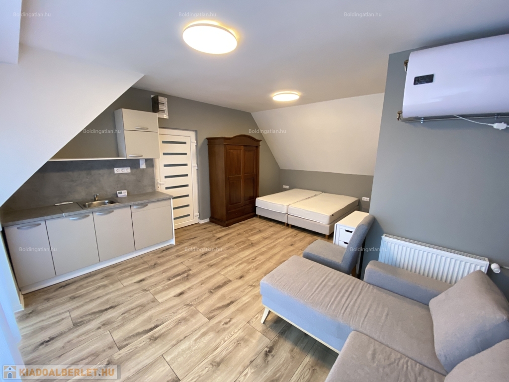 Kaposváron a Rómahegyen, teljes körben felújított családi ház 1. emeletén lévő 26 m2-es lakás 7,5 m2-es erkéllyel együtt hosszú távra kiadó. A lakásban 1 szoba-konyha - 7,5 m2-es erkély, fürdőszoba-wc helyiségek kerültek kialakításra, a fűtése gázközponti kazánnal, a melegvíz ellátása villanybojlerrel megoldott, továbbá a nappaliban légkondicionáló is felszerelésre került. Az ingatlant a tulajdonosa maximum 2 fő részére kívánja bérbe adni, a kis állat tartását és a dohányzást nem engedélyezi. Bérleti díj: 170.000.- Ft/hó + rezsi + 2 havi kaució