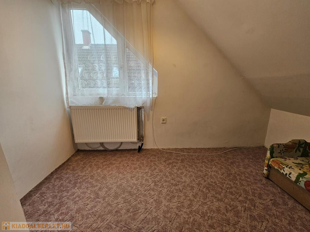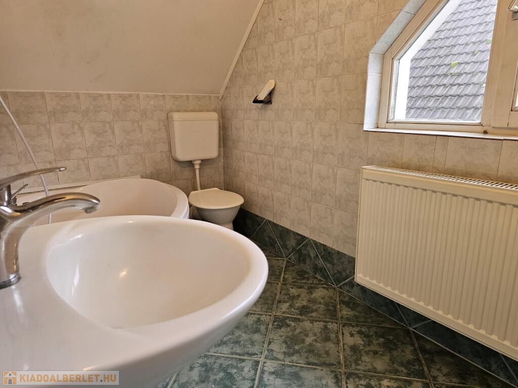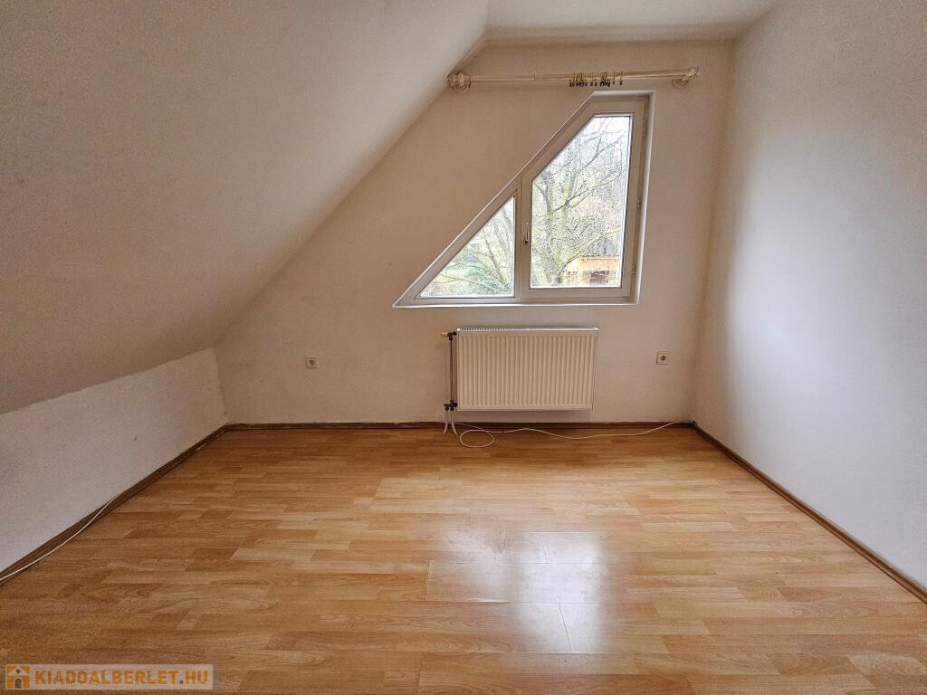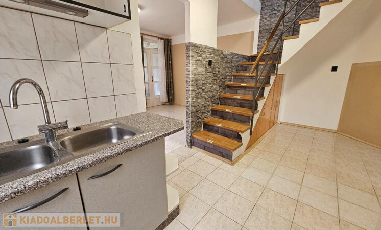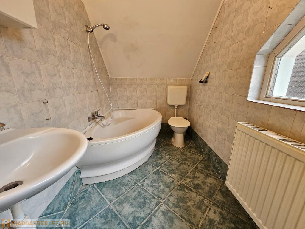Kaposváron, a Bláthy Ottó utcában kínáljuk bérbevételre ezt a lakást. Egy kétlakásos családi ház egyik felében helyezkedik el, belső kétszintes. Földszinti részén az előtérhez csatlakozik egyrészt a konyha, másrészt a nappali, ahol az étkező is kialakítható, valamint találunk még itt egy kisebb fürdőt WC-vel, zuhanyzóval. A beépített tetőtérben a közlekedőből nyílik három külön bejáratú szoba és egy sarokkádas fürdő. A lakás alapterülete bruttó 90, nettó 77 m2. Tartozik hozzá egy garázs, valamint a kazánház, mint tároló. Fűtése saját gázkazánról működik, a szobákban radiátorokkal, a többi helyiségben padlófűtéssel. Külön mérőórák vannak, így a fogyasztás pontosan mérhető, a rezsi ezek alapján fizetendő. A lakás bútorok nélkül, üresen kerül kiadásra. Mivel van már egy kutya, ezért más állat nem hozható, és a dohányzás nem megengedett. Az udvar egy részét lehet használni. Bérlőt hosszabb távra, legalább egy évre keresünk, aki kéthavi bérleti díjnak megfelelő összegű kaució és az első havi bérleti díj kifizetése után beköltözhet.