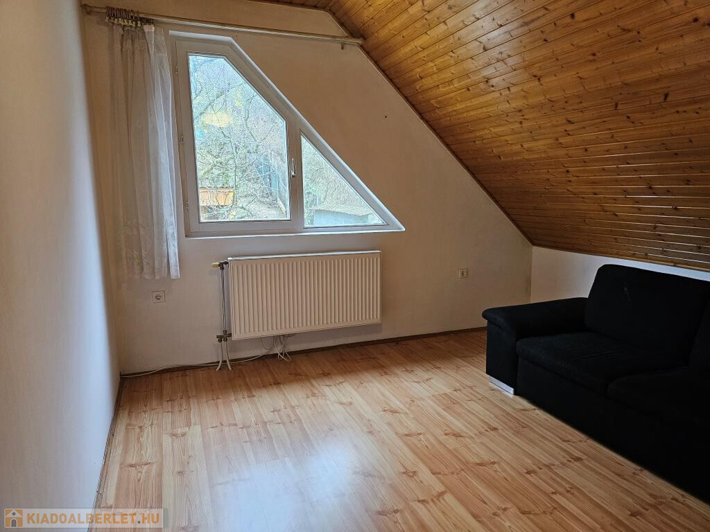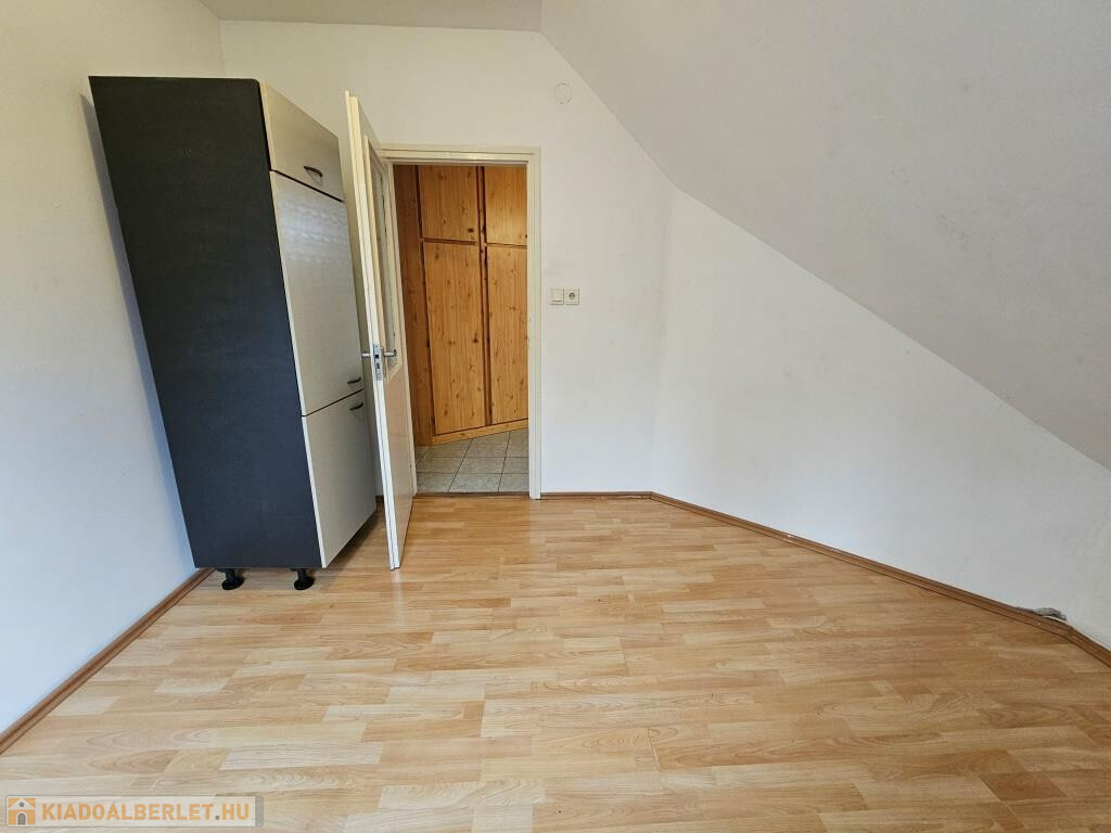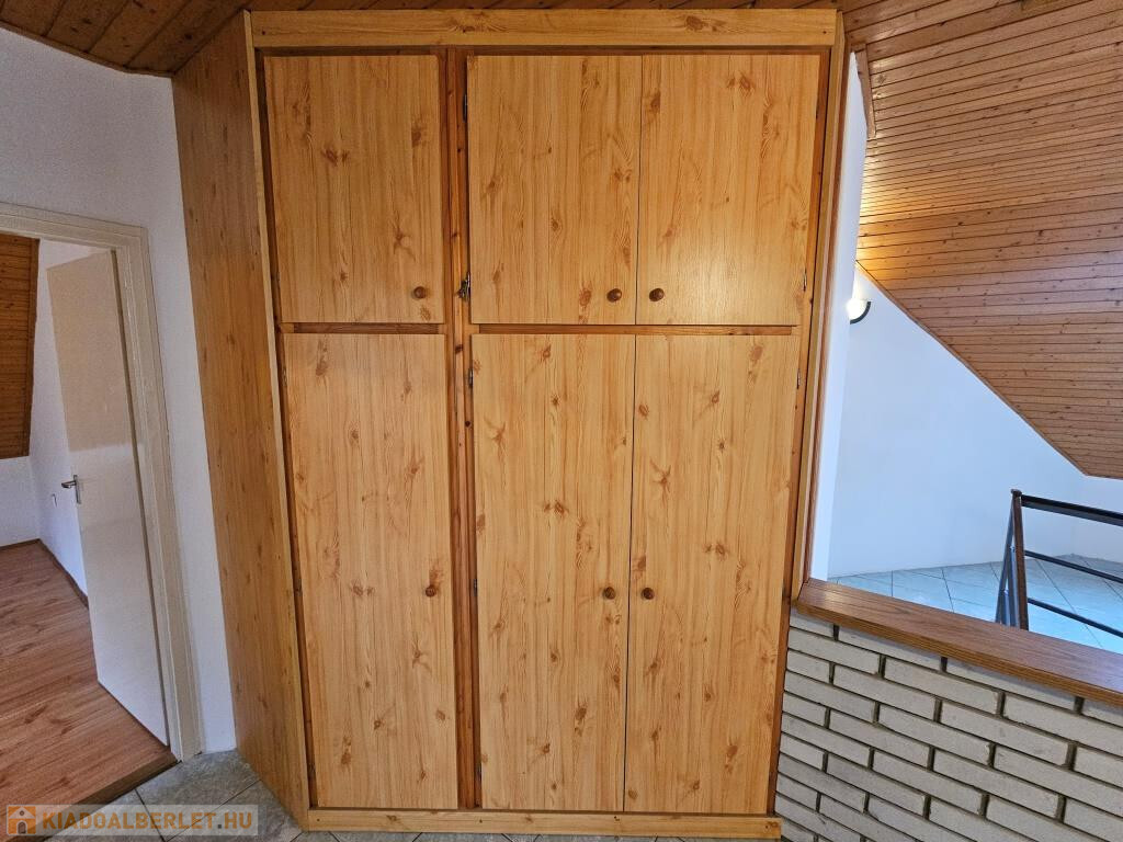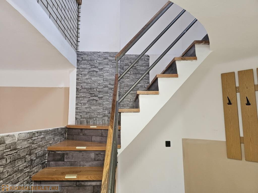 Kaposváron, a Bláthy Ottó utcában kínáljuk bérbevételre ezt a lakást. Egy kétlakásos családi ház egyik felében helyezkedik el, belső kétszintes. Földszinti részén az előtérhez csatlakozik egyrészt a konyha, másrészt a nappali, ahol az étkező is kialakítható, valamint találunk még itt egy kisebb fürdőt WC-vel, zuhanyzóval. A beépített tetőtérben a közlekedőből nyílik három külön bejáratú szoba és egy sarokkádas fürdő. A lakás alapterülete bruttó 90, nettó 77 m2. Tartozik hozzá egy garázs, valamint a kazánház, mint tároló. Fűtése saját gázkazánról működik, a szobákban radiátorokkal, a többi helyiségben padlófűtéssel. Külön mérőórák vannak, így a fogyasztás pontosan mérhető, a rezsi ezek alapján fizetendő. A lakás bútorok nélkül, üresen kerül kiadásra. Mivel van már egy kutya, ezért más állat nem hozható, és a dohányzás nem megengedett. Az udvar egy részét lehet használni. Bérlőt hosszabb távra, legalább egy évre keresünk, aki kéthavi bérleti díjnak megfelelő összegű kaució és az első havi bérleti díj kifizetése után beköltözhet.