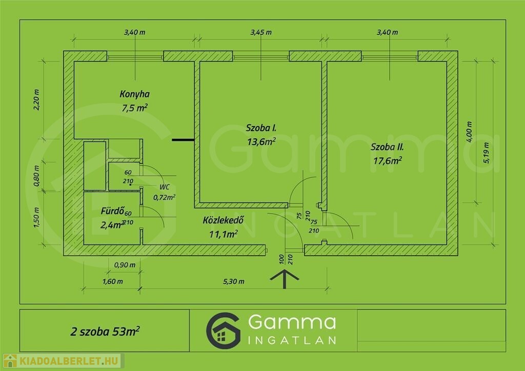 A szobák laminált parkettával burkoltak, a falak festettek.