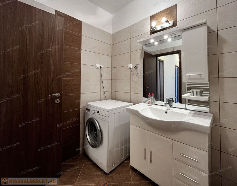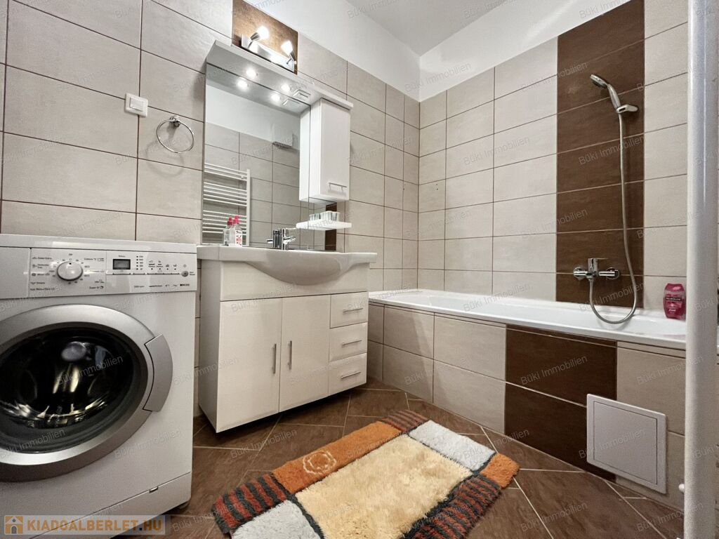 A fürdőszoba tágas, kényelmes káddal felszerelt, a WC külön helyiségben található. A praktikumot tovább növeli a polcozott gardróbszoba, valamint a külön háztartási tároló, mely szintén polcozott – így minden holminak meglesz a helye. A lakás fűtését egyedi gázkazán biztosítja, ami hatékony és költségtakarékos megoldás. A nyári hőség ellen klíma nyújt kellemes hűtést, az ablakokon redőny és szúnyogháló gondoskodik a zavartalan pihenésről.