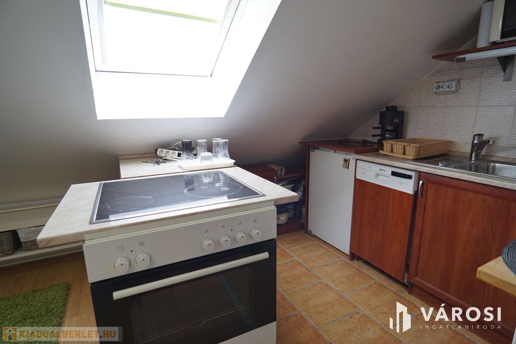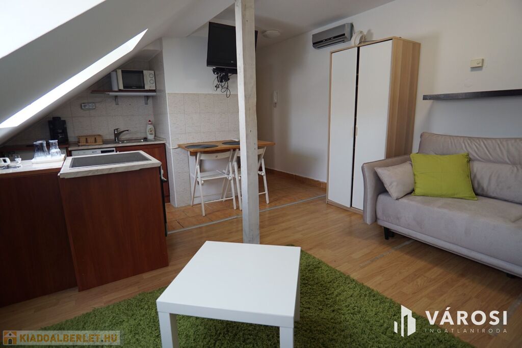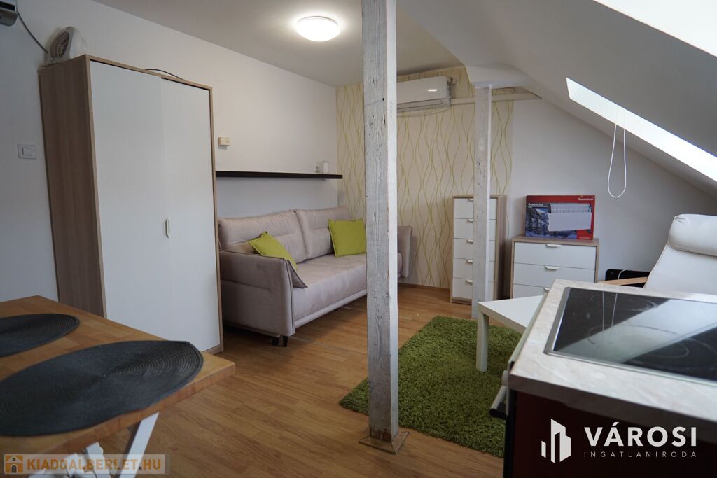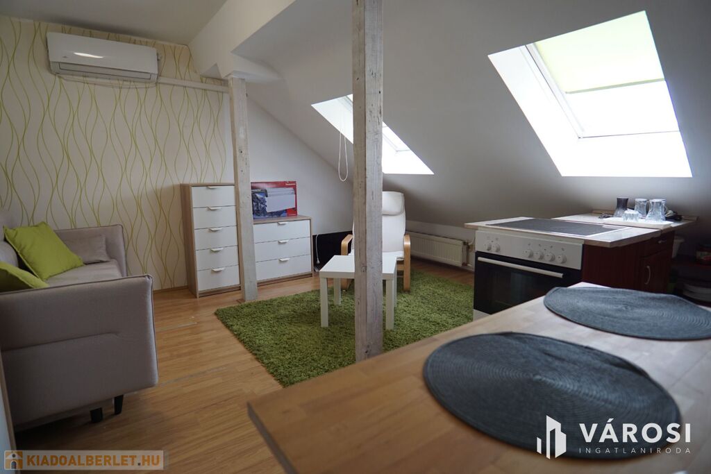 Nagykanizsán, csendes nyugodt környezetben, de mégis a belváros szívében, vált kiadóvá, ez a 21m2-es, teljes gépesítéssel, teljes bútorzattal felszerelt, garzon lakás. Az ingatlan, a 3. emeleten, tetőtérben található. Fűtés: elektromos. Közös költség: 12500 Ft Tájolás: Nyugat. Kisállat nem hozható, a lakásban a dohányzás tilos!