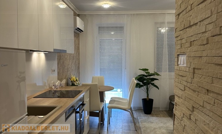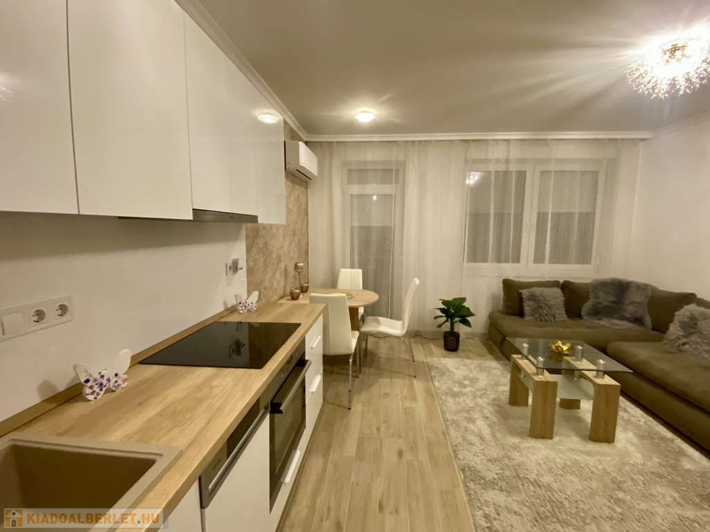 Nyíregyházán, a Belvároshoz közel, 2024-ben átadott társasházban kiadó egy 1 hálószobás + nappalis, első emeleti, klimatizált, igényesen bútorozott és teljesen gépesített lakás.