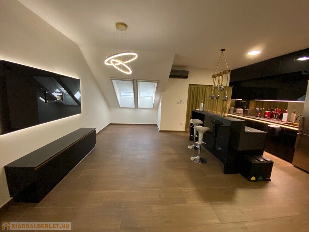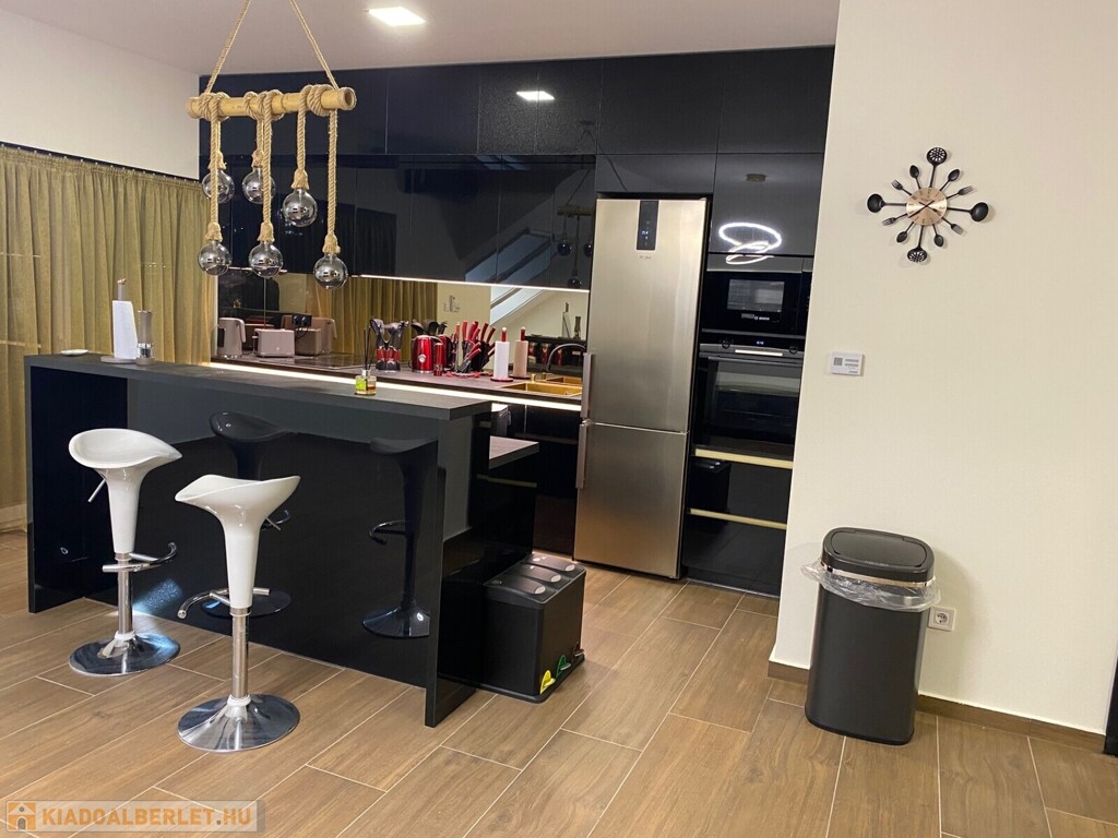 A lakás teljes körűen bútorozott, minőségi Bosch gépesítéssel felszerelt (mosogatógép, mosó-szárítógép).