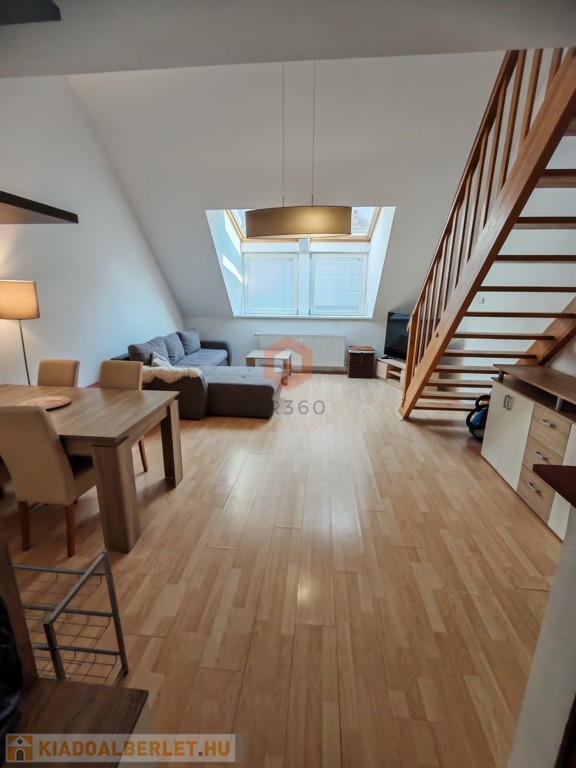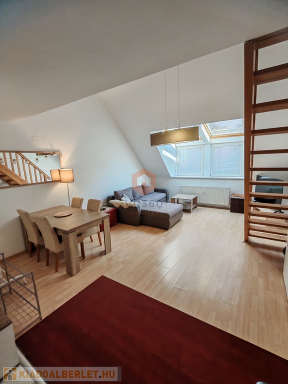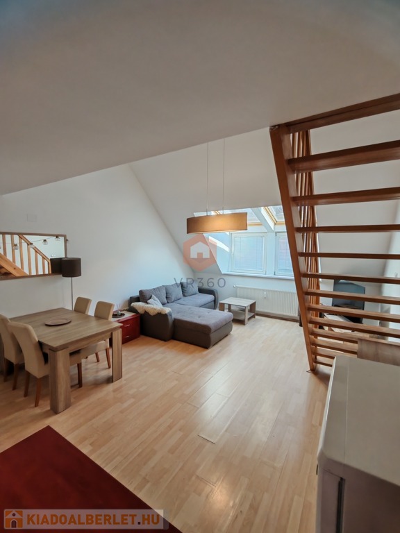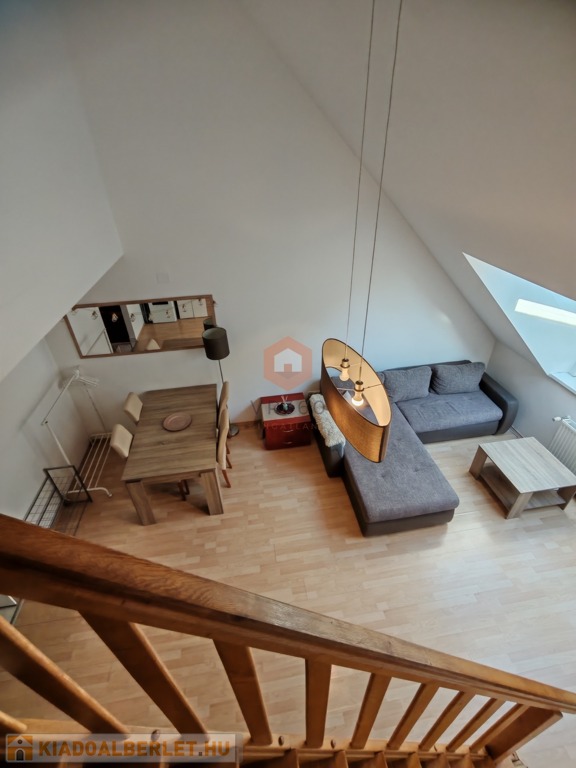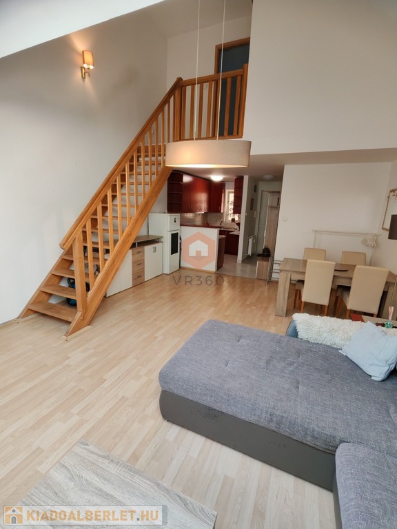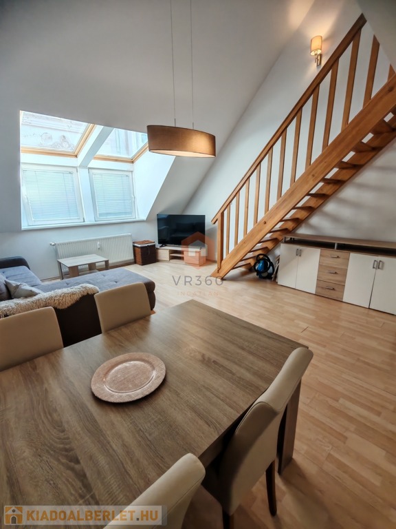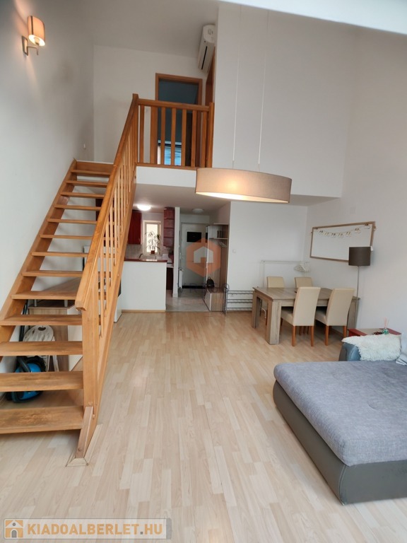 Pécs belvárosának központi részén kiadó egy 70 nm-es, belső kétszintes klímás lakás, egy 2 emeletes tégla társasház 2. emeletén.