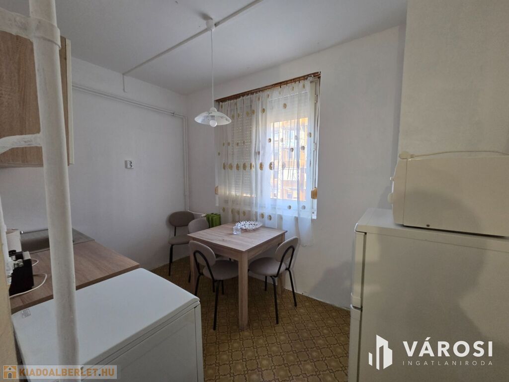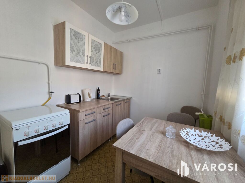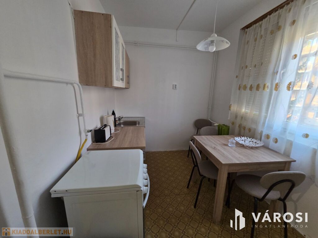 A lakás távfűtéses, kedvező elrendezésű, kényelmes ingatlan, a képeken látható bútorokkal, hűtőgéppel, mosógéppel, gáztűzhellyel felszerelve kiadó.
