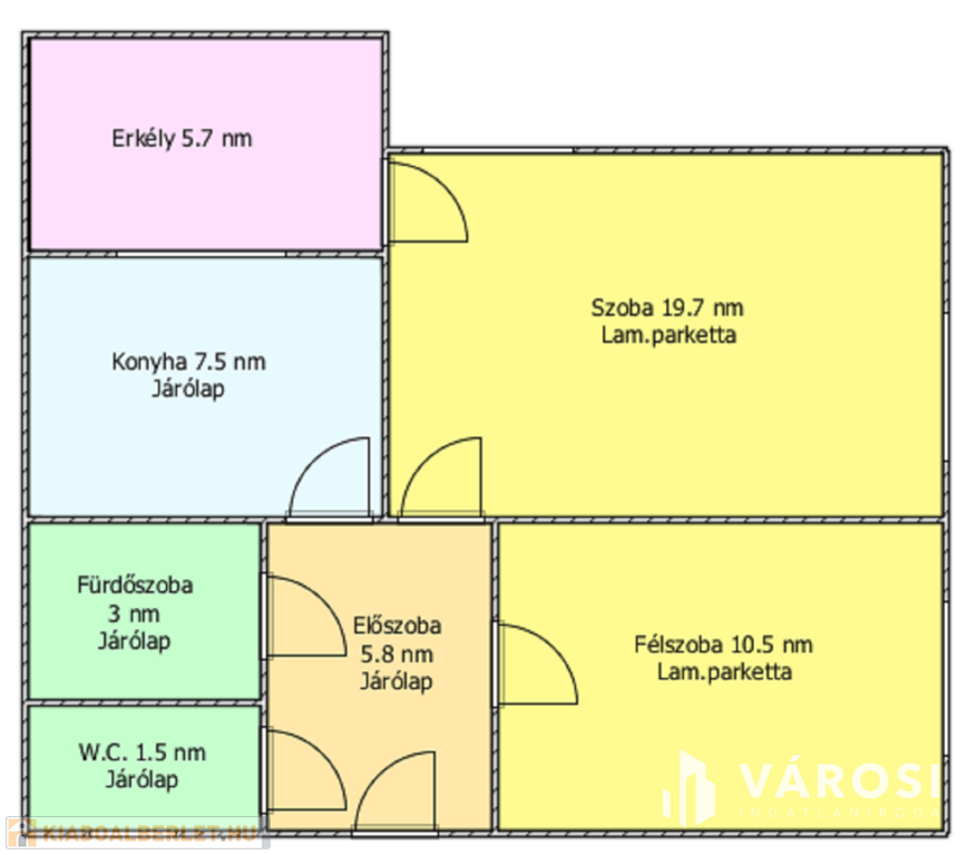 A lakásban 2 szoba, konyha, előszoba, fürdőszoba, külön nyíló W.C., erkély található.