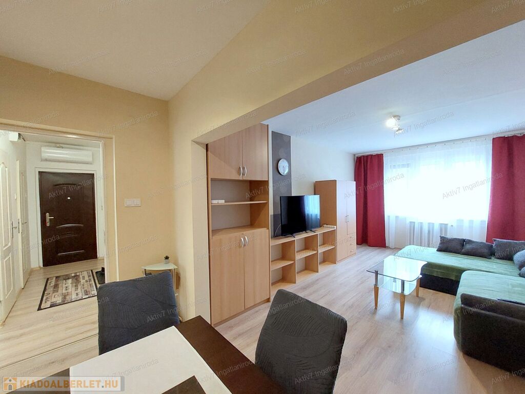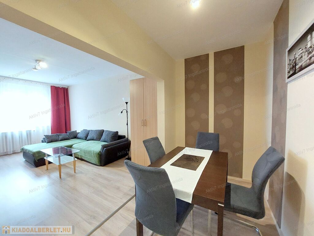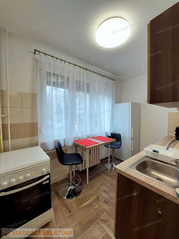 A lakás két külön bejáratú szobával rendelkezik, laminált padlóburkolattal és festett falakkal. Az ingatlan igényesen berendezett, az új bérlőnek csak költöznie kell.