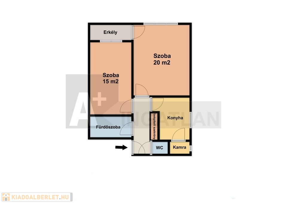 A 2 szoba praktikusan külön bejáratú, ezért 2 egyetemista részére is tökéletes választás.