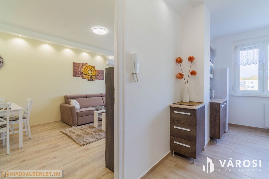 Szegeden a Vedres utcában kínálom bérlésre ezt az ízlésesen felújított lakást egy panelprogramos, liftes ház ötödik emeletén. A mellékelt alaprajzon jól látható az elrendezés, valamint a lakás tájolása. Fűtése távfűtéses radiátorok, hűtése klímával szabályozható.