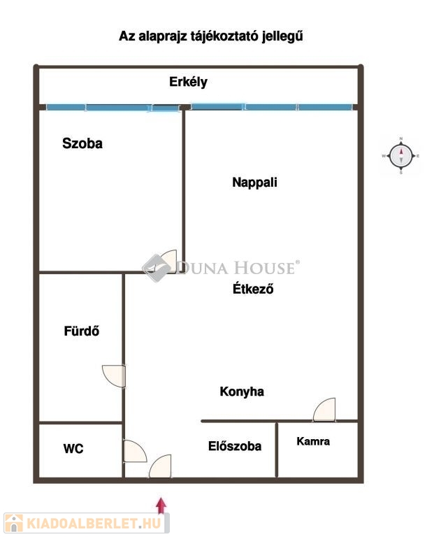 Elrendezés: tágas, világos nappali étkezővel és amerikai konyhával, külön nyíló hálószoba, fürdő és WC külön helyiségben