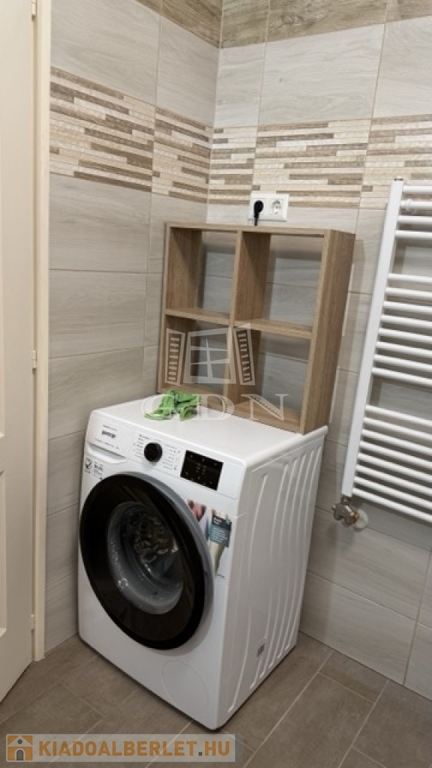 Az előszobában praktikus tároló, a fürdőben zuhanyzó, mosógép és WC található.