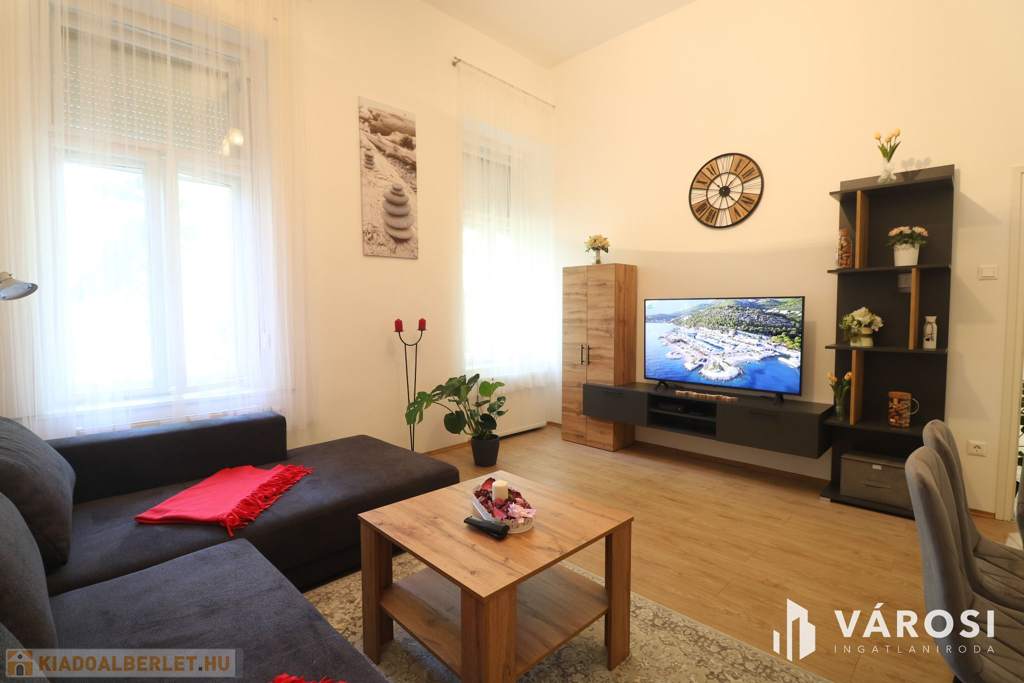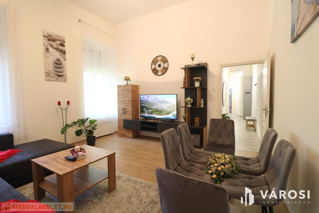 Szeged Belvárosában az Anna kút közvetlen szomszédságába 1. emeleti,67 nm -es háromszobás, szuperül berendezett, felszerelt 69 nm -es lakás kiadó.