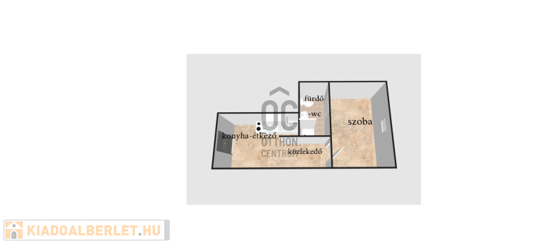 A lakás mérete 26,26 m2, elrendezése: konyha-étkező, közlekedő, fürdő mellékhelyiség és egy kellemes szoba.
