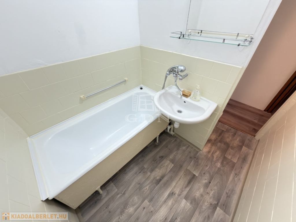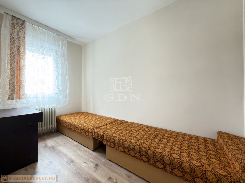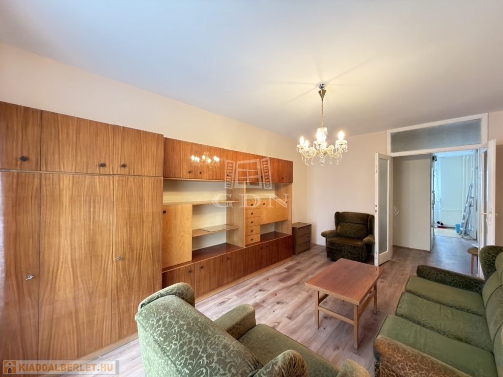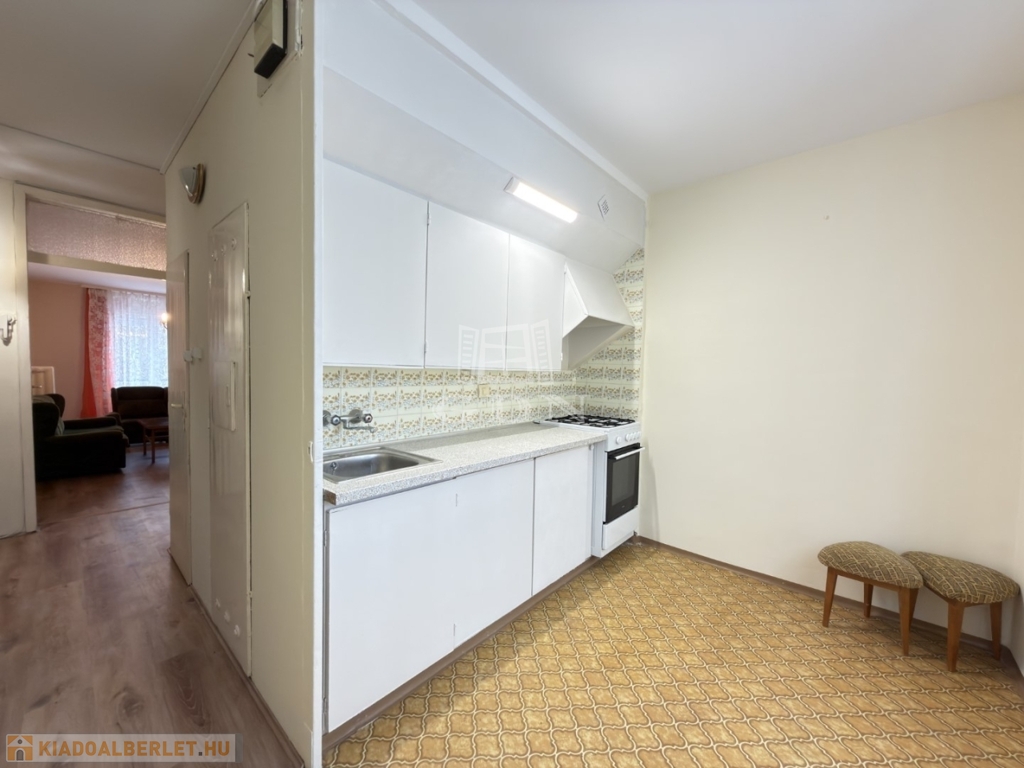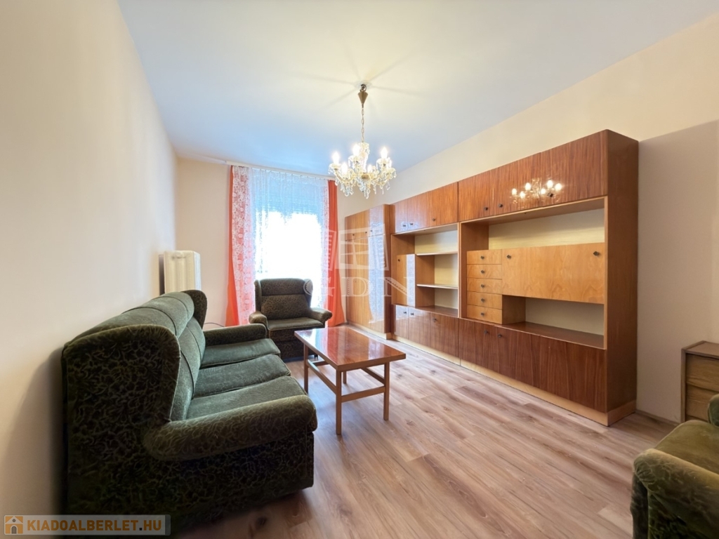BL-004716. Szedreskerti lakónegyedben 1,5 szobás, 1. emeleti bútorozott, de gépesítés nélküli átlagos állapotú lakás kiadó. A lakás 44 nm-es, jó elosztású, ablakai zöldövezetre néznek. Minden helyiségben a falak festettek, laminált padló van a konyhában és vizes helyiségekben, és a szobákban. A kádas fürdő és a wc egy helységben található.