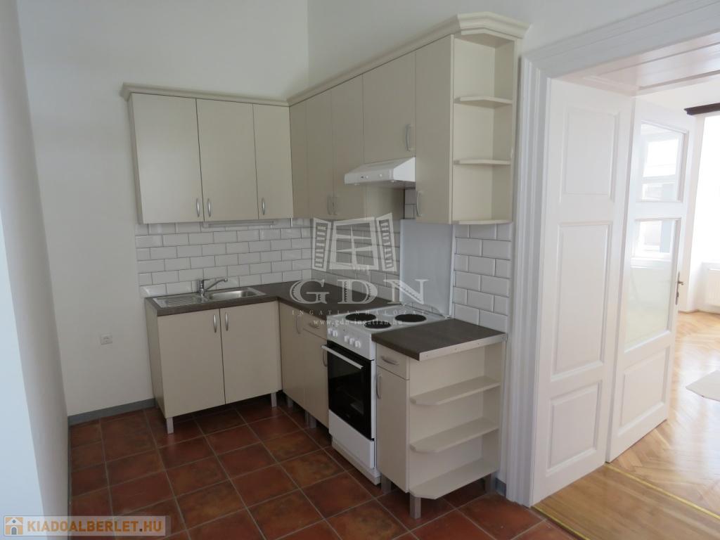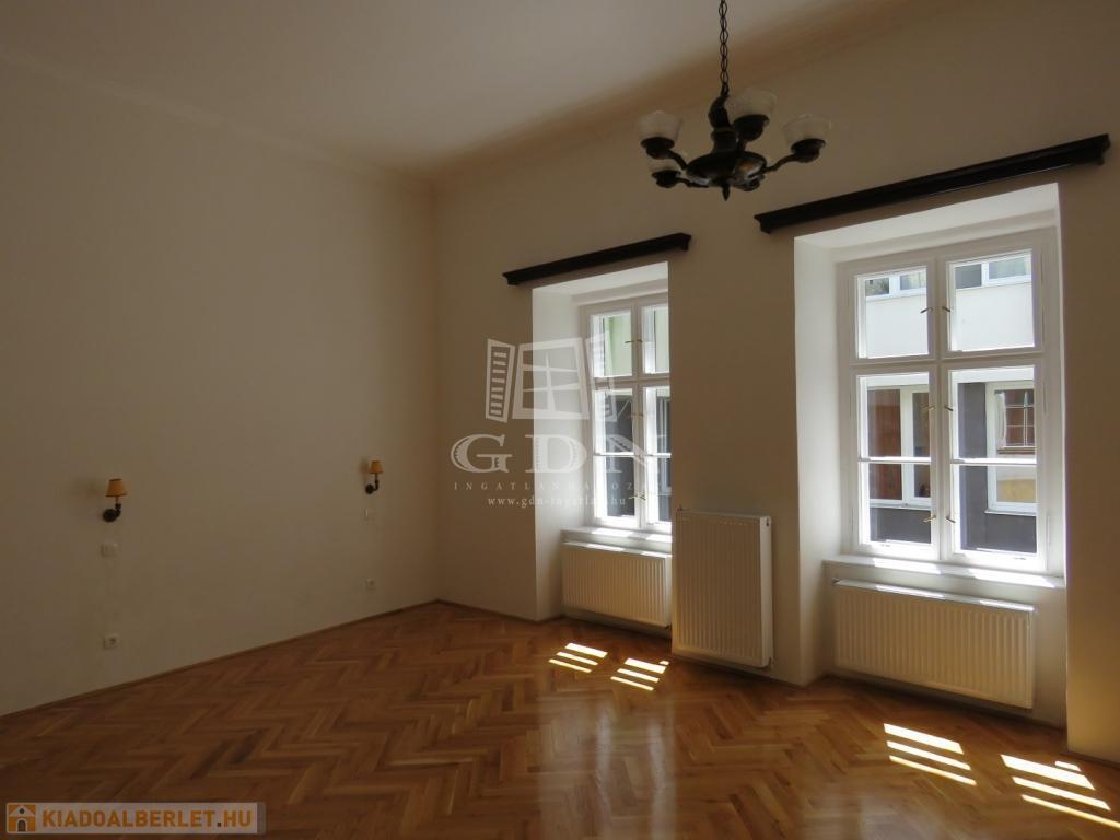 BL-002047. Történelmi belvárosban, téglaépítésű társasházban, felújított, földszinti 48 nm-es, 1 szobás, egyedi fűtéses, klímás, bútor nélküli lakás hosszútávra kiadó.