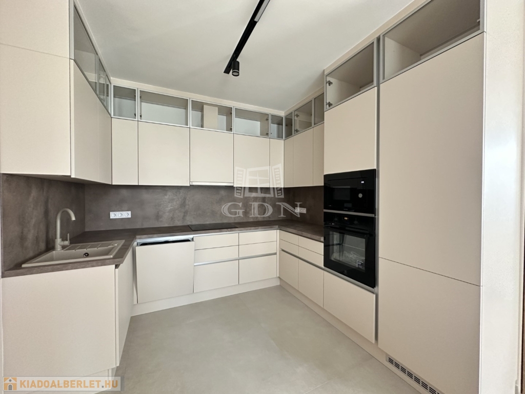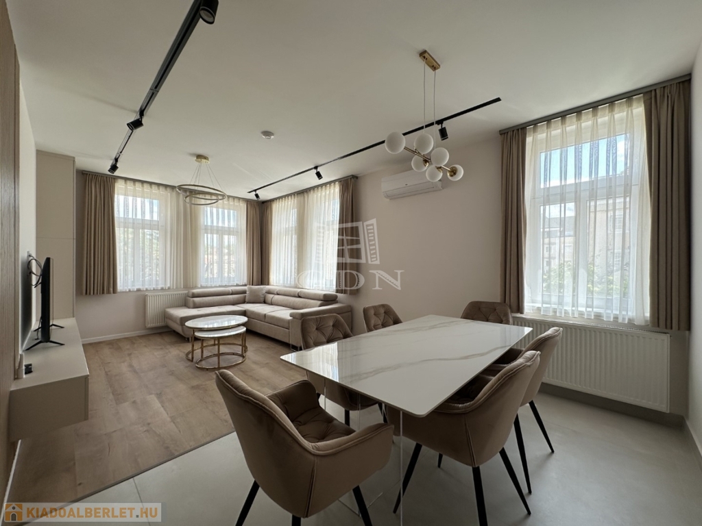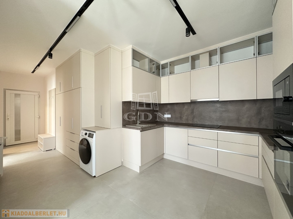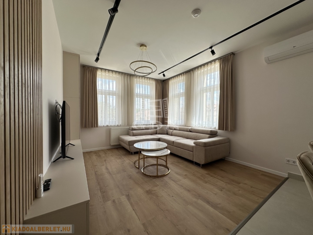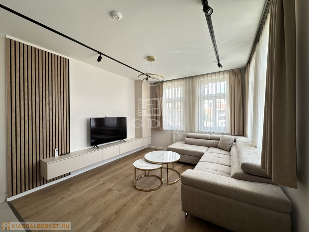 BL-004550. Belvárosban, modern újszerű társasházban, felszerelt lakás, azonnali költözéssel, zárt udvari beállóval együtt, hosszútávra kiadó.