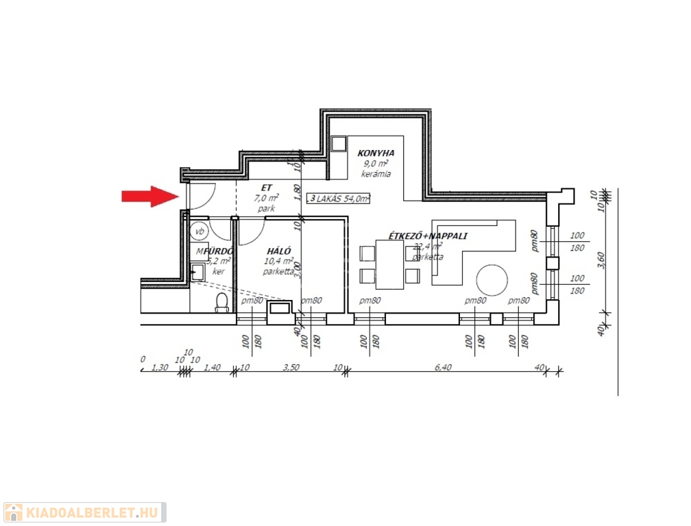 - amerikai konyhás nappali + 1 szoba (10,4 nm)