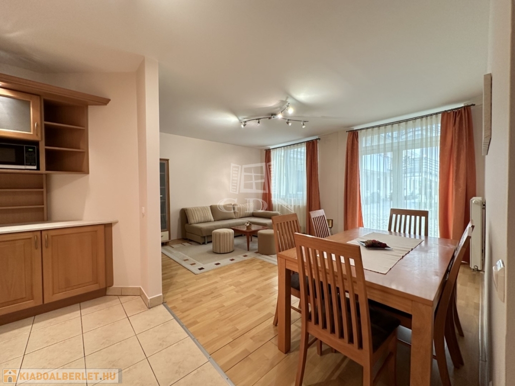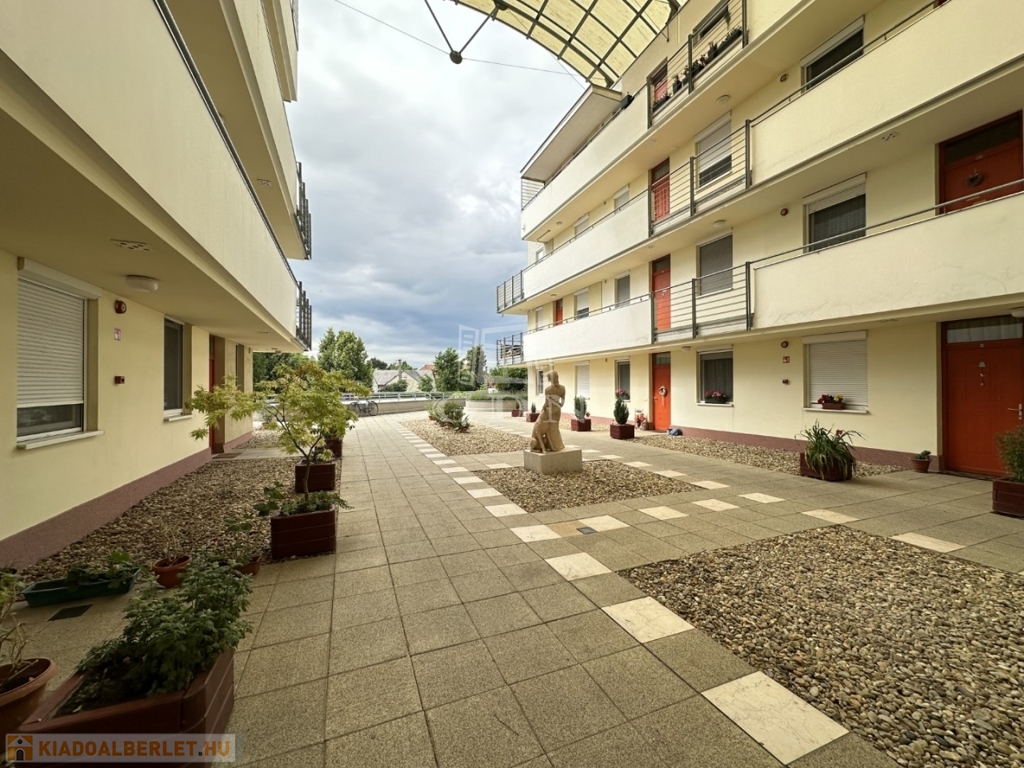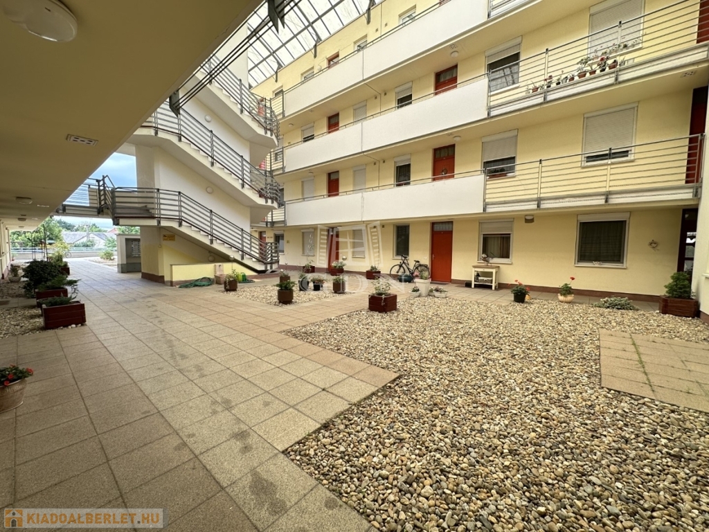 BL-004563. Zöld udvarházban, Alba Pláza közelében 2006-ben épült akadály mentes társasházban kiadó hosszútávra, egy földszinti, nappali + 1 szoba elosztású 50 nm-es, belső teraszos, bútorozott és gépesített, jó állapotú téglalakás.