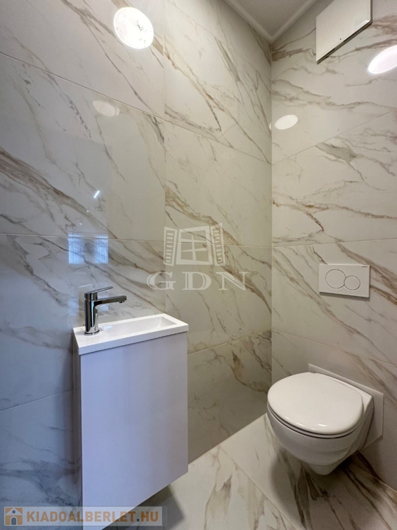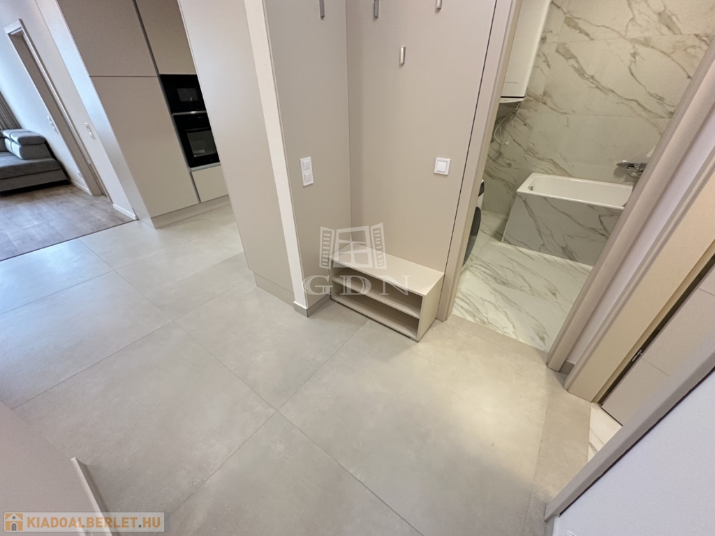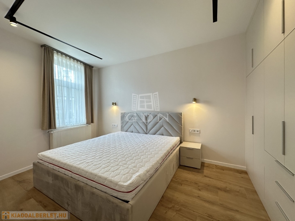 BL-004548. Belvárosban, modern újszerű társasházban, felszerelt lakás, azonnali költözéssel, zárt udvari beállóval együtt, hosszútávra kiadó.