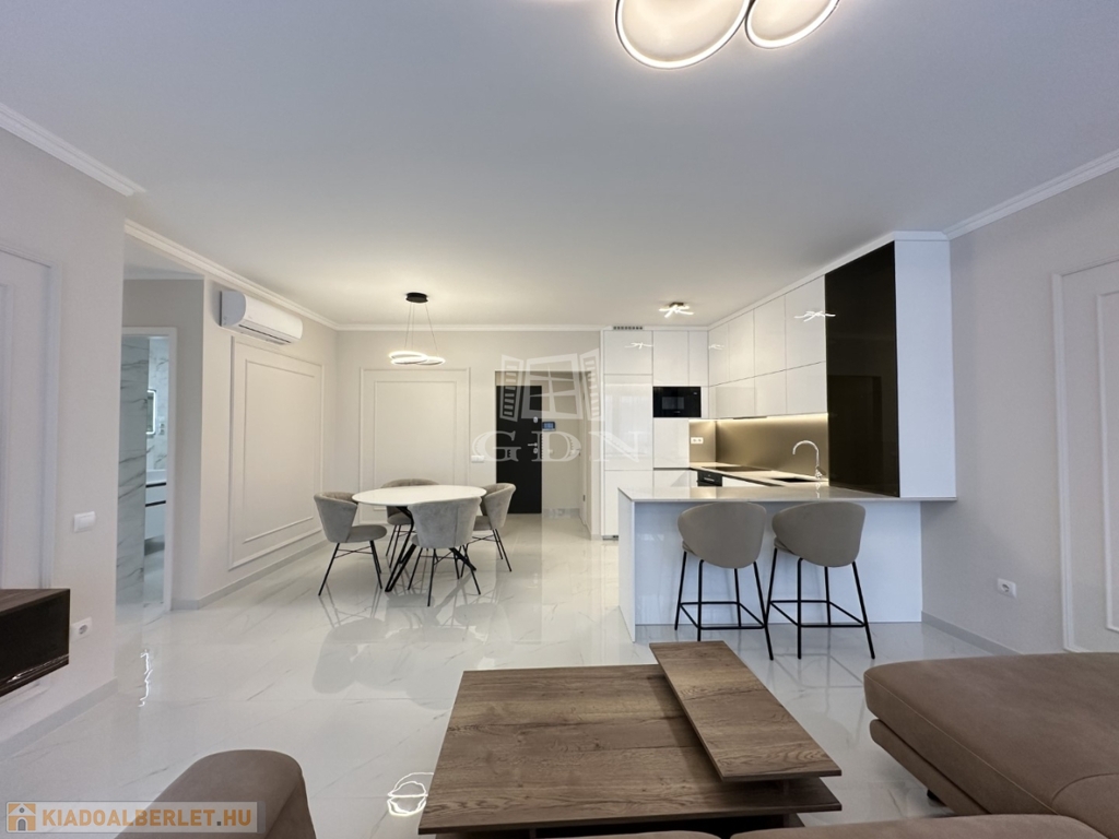 BL-004296. Belvárosban, modern akadálymentes, 2 lifttel ellátott, SMART HOME rendszerrel felszerelt, újszerű társasházban, felszerelt lakás, azonnali költözéssel, zárt udvari beállóval együtt, hosszútávra kiadó.