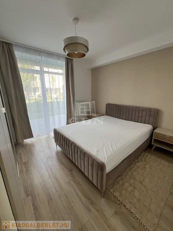 Szigetszentmiklóson, remek közlekedési lehetőségek mellett, az új Thököly utcai lakóparkban, modern, belső udvaros, a külvilágtól elektromos kapuval zárt társasházban, 63m2 lakóterületű, összkomfortos, egyedi méréssel rendelkező házközponti fűtéses, földszinti, lakberendező által berendezett lakás, 10m2 kertkapcsolatos terasszal kiadó.