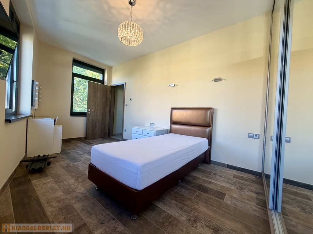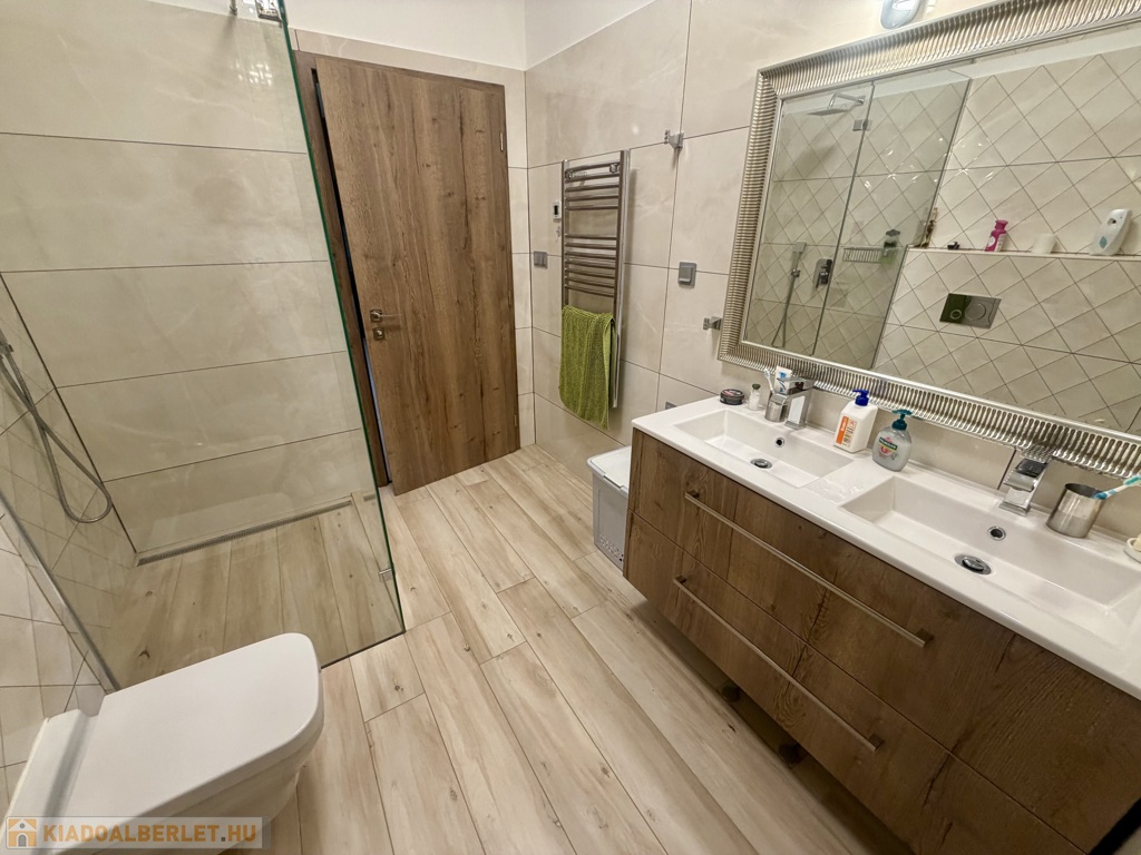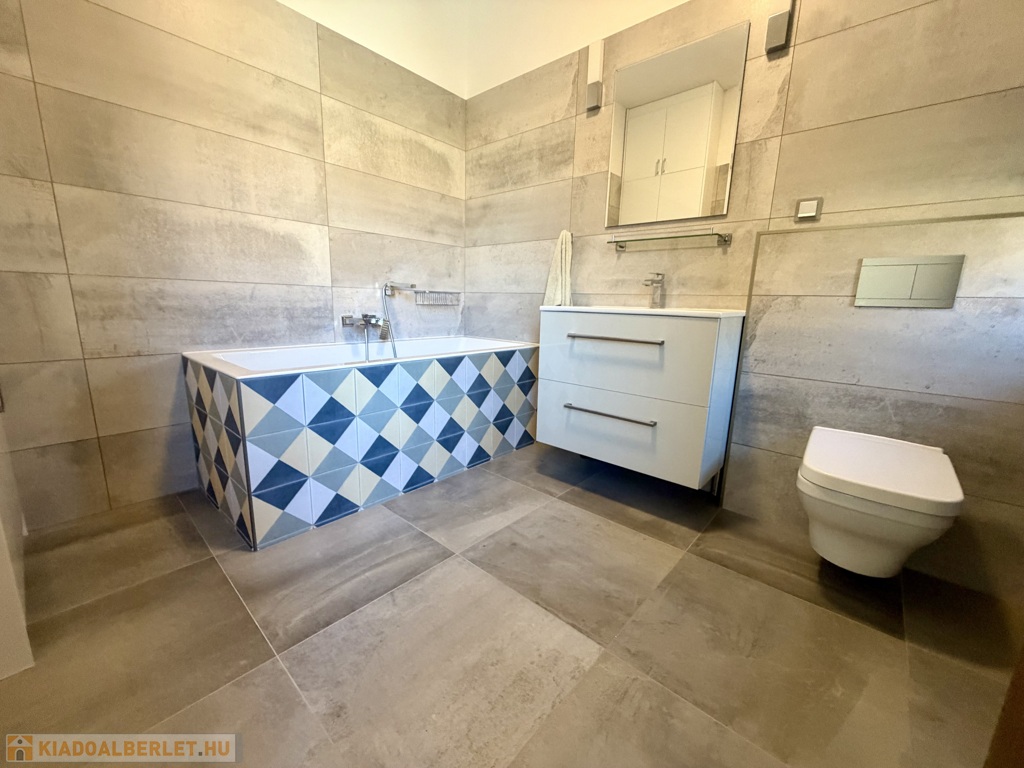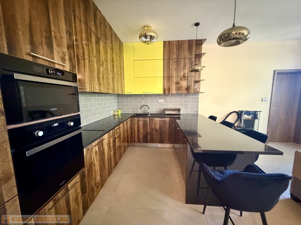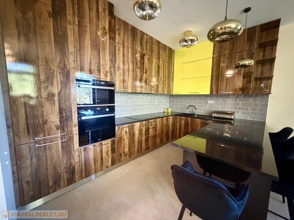 A prémium minőségű beépített konyha minden igényt kielégít – modern gépekkel, letisztult dizájnnal és minőségi anyagokkal. A lakás akár teljes bútorzattal is bérelhető, ízléses, harmonikus berendezéssel.