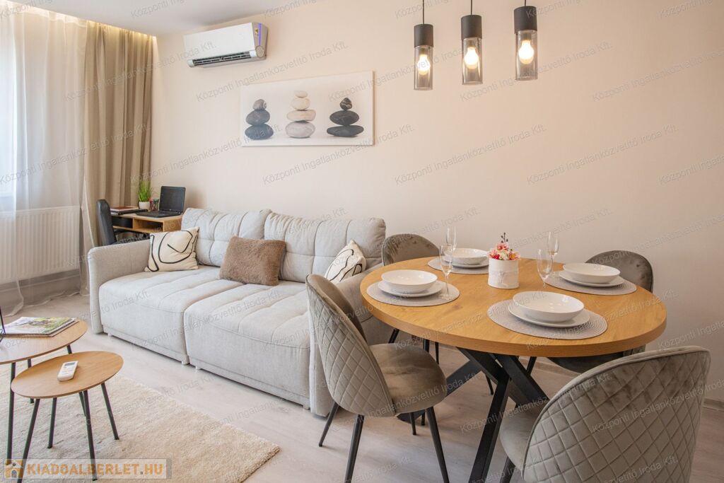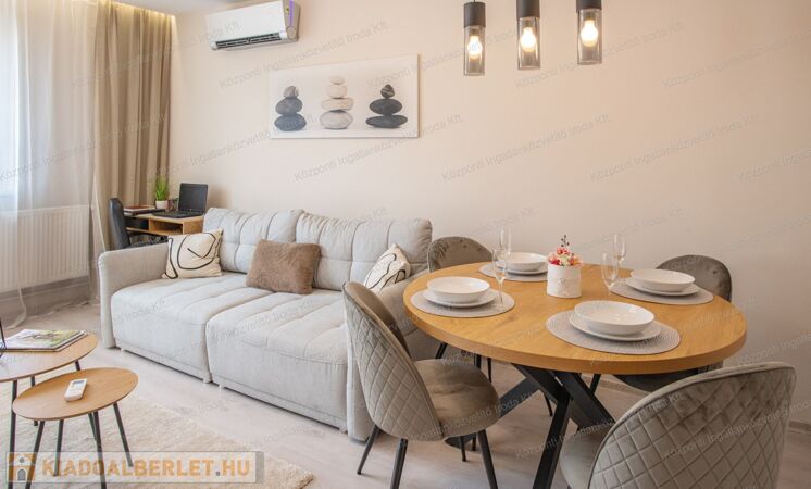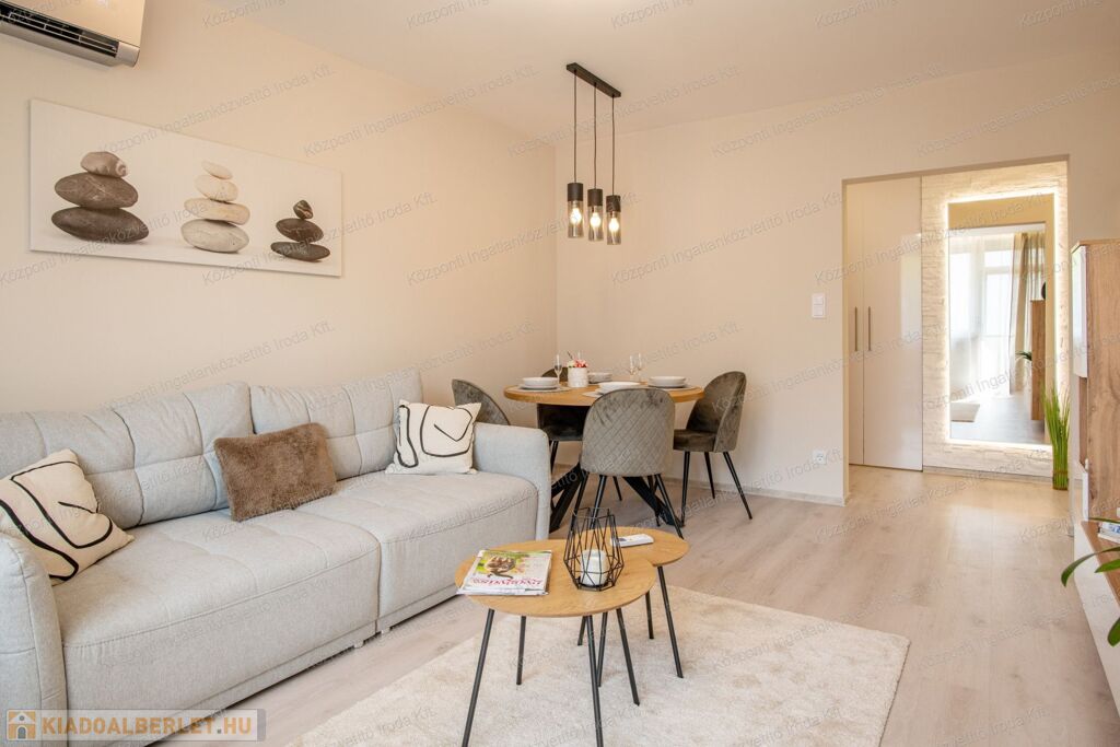 A lakás bútorozott, berendezett, gépesített. Az ingatlanban kisállat nem tartható, a dohányzás nem megengedett.