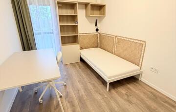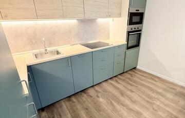 A lakberendező által megtervezett és megvalósított lakásban egy vadonatúj fiatalos konyhabútor gépekkel és teljes bútorzat várja leendő ideiglenes, ám hosszú távú lakóit.