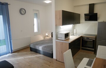 Győrben, a marcalvárosi „ kiserdő” szomszédságában, Mécs László utcában, 2019-ben átadott, fokozottan hőszigetelt, belső udvaros társasház földszintjén 30 m2-es, amerikai konyhás, hálófülkés, teraszos ( 5 m2 ), zöldre néző, csendes-világos, fiatalos társasházi lakás 2 havi kaucióval, nemdohányzó egyedülállónak kiadó. A tulajdonos bútorokat, okostévét, hűtőt, mikrosütőt és mosógépet is biztosít a bérlő számára.