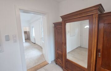 A két hálószobában a burkolat, szép állapotú parketta. (A hátsó szoba, külön bejárattal is megközelíthető a fürdőszobából.)